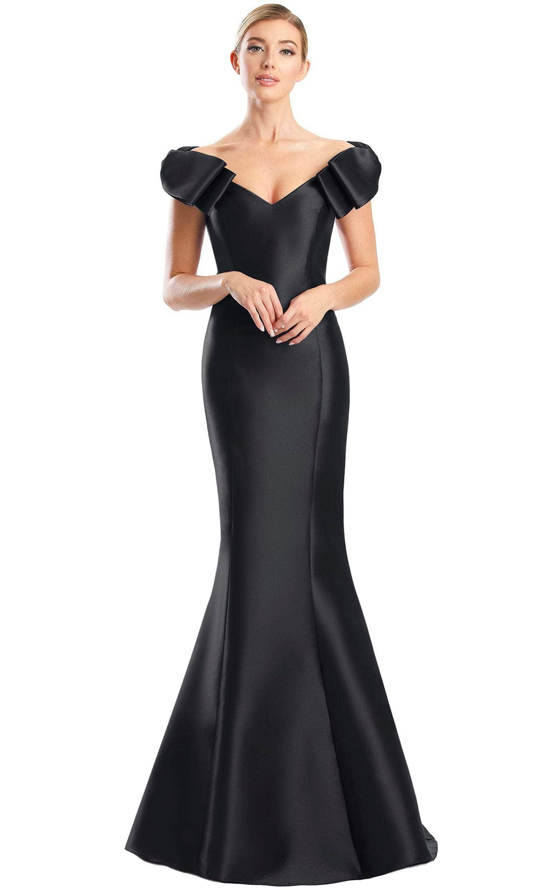 Alexander by Daymor 1773S23 - Bow Appliqued Sleeves Formal Dress Evening Dresses 00 / Black