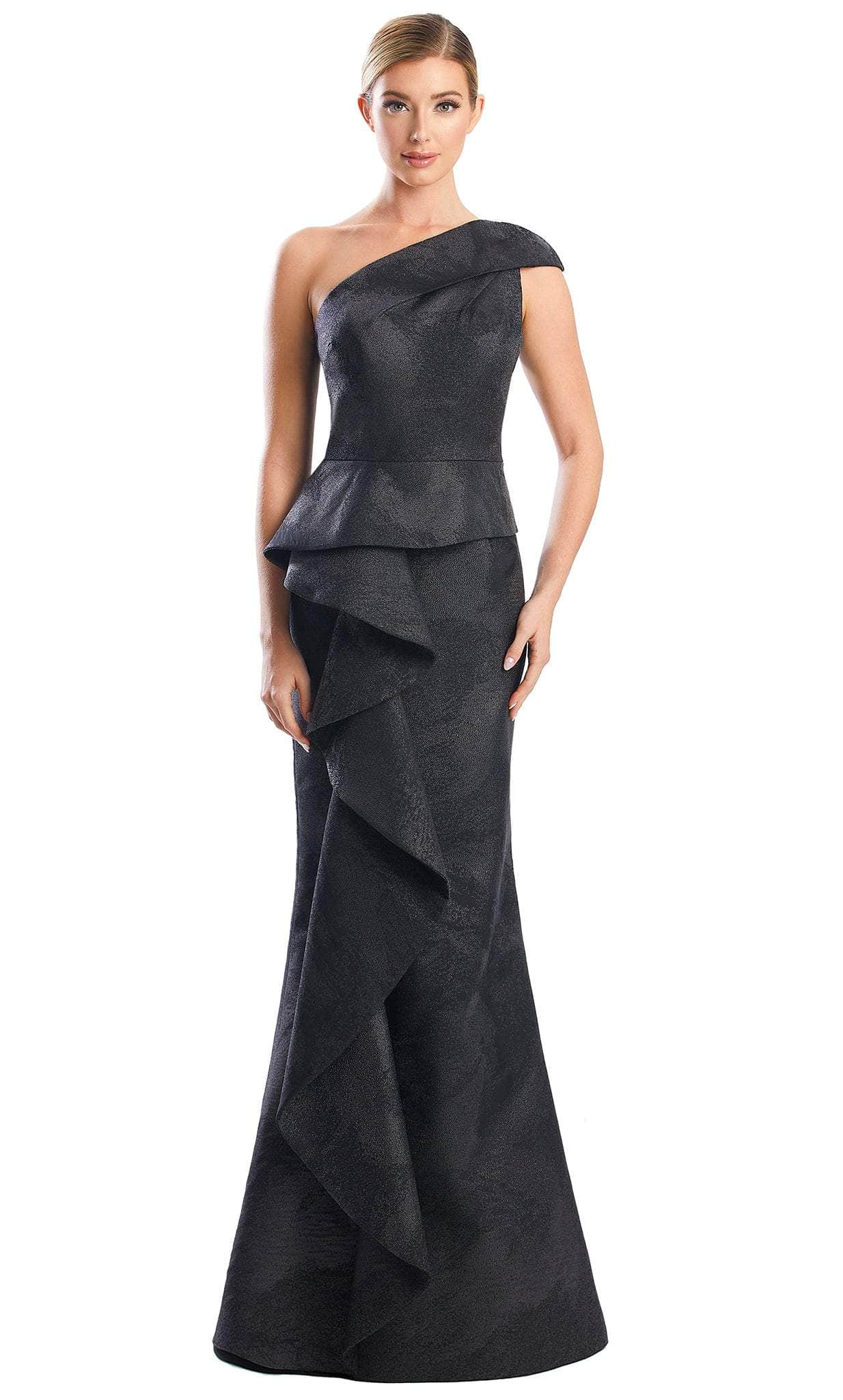 Alexander by Daymor 1782S23 - One Shoulder Printed Trumpet Gown Evening Dresses 00 / Black