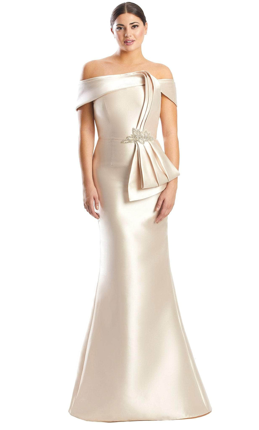 Alexander by Daymor 1783S23 - Draped Side Sash Formal Dress Evening Dresses 00 / Champagne