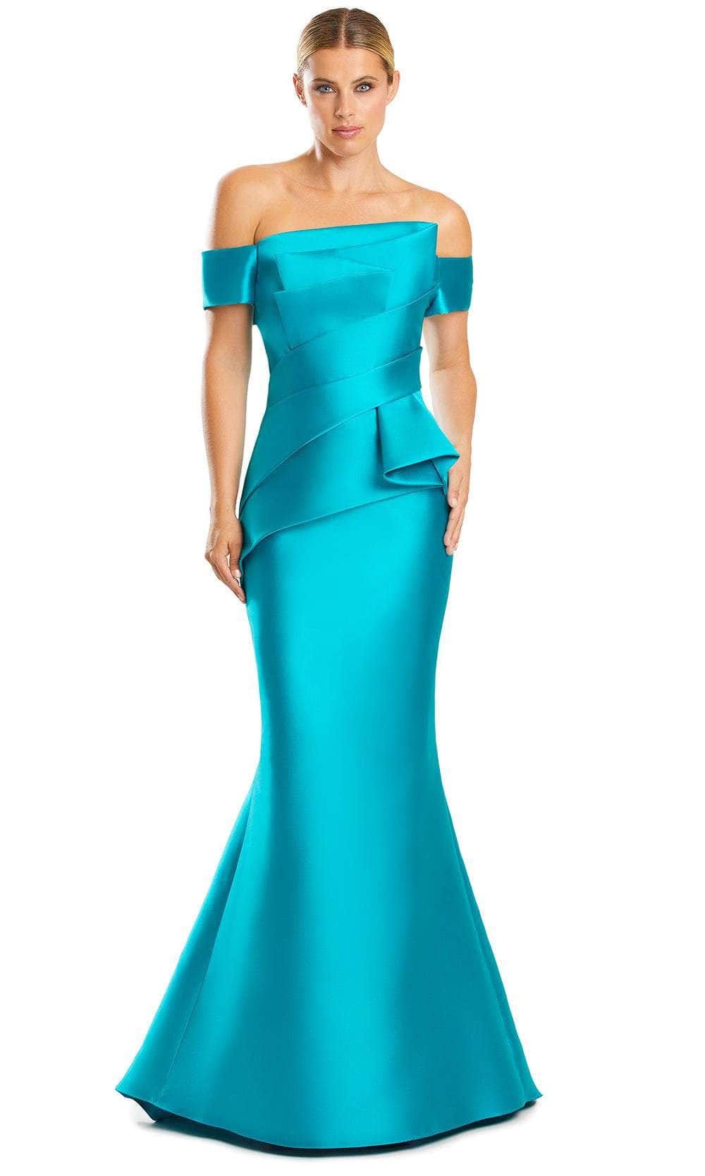 Alexander by Daymor 1878F23 - Pleated Off Shoulder Evening Gown