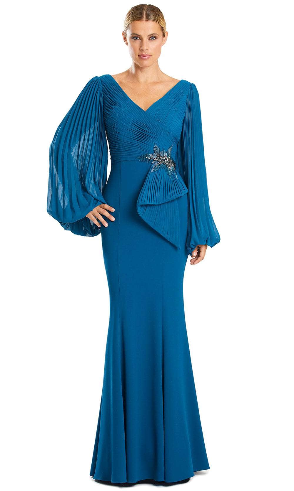 Alexander by Daymor 1886F23 - Pleated V-Neck Evening Gown Special Occasion Dress 00 / Teal Blue