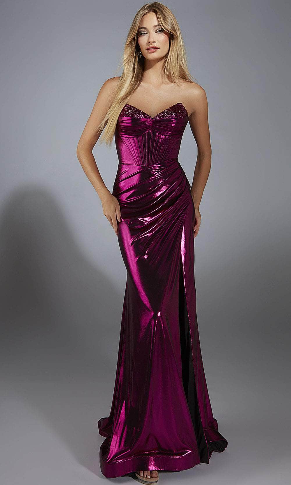 Make a lasting impression with the Alyce Paris 61798. This elegant gown boasts a V-neckline, beaded bust and strapless design, creating a classic yet contemporary look. The fitted sheath skirt and corset boning bodice enhance your silhouette, while the high slit offers a seductive touch. The open back design adds an element of surprise, ensuring you captivate from every angle. Ideal for special occasions, this Alyce Paris 61798 embodies understated glamour and refined style. Models are wearing Black/Gold, Fuchsia/Black, and Purple Ghost colors.