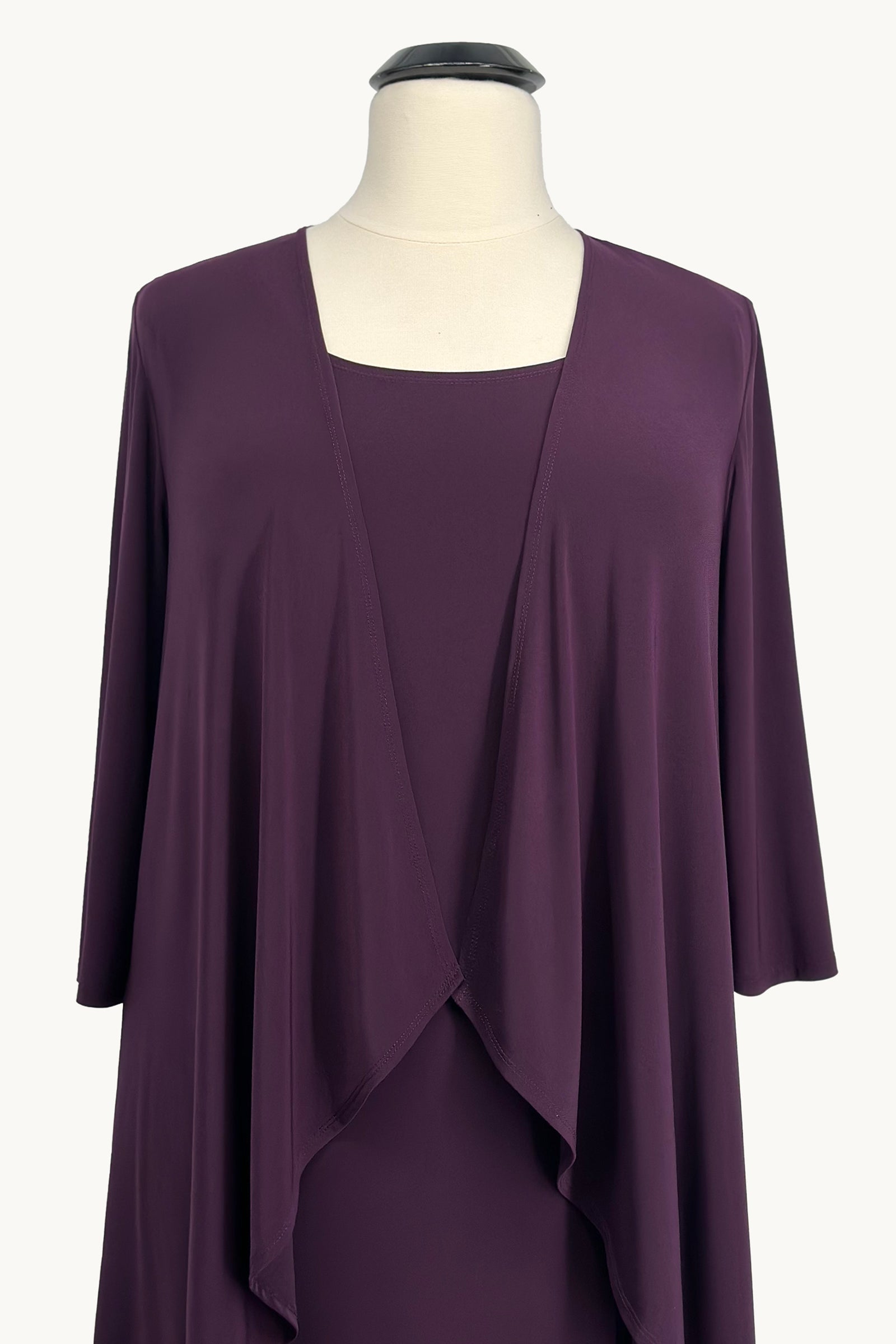 Amoris by Ladivine T9000 - Two-Piece Tea Length Formal Dress Mother of the Bride Dresses in Eggplant