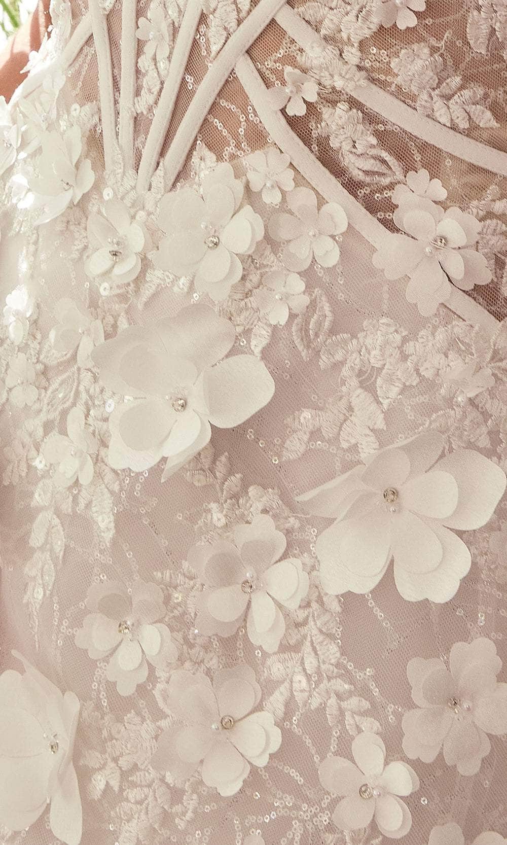 Blend grace and modern elegance with this Andrea and Leo WL083 dress. This chic sheath dress features a strapless sweetheart neckline and a sheer, structured boned bodice, providing a flattering fit. The lace skirt, adorned with dimensional floral appliqué, enhances the short A-line silhouette, offering a touch of romantic allure. Ideal for wedding receptions, engagement photoshoots, or rehearsal dinners, this Andrea and Leo WL083 combines timeless elegance with contemporary sophistication, ensuring you shine brightly and leave a lasting impression on every occasion. Model is wearing Off White color.
