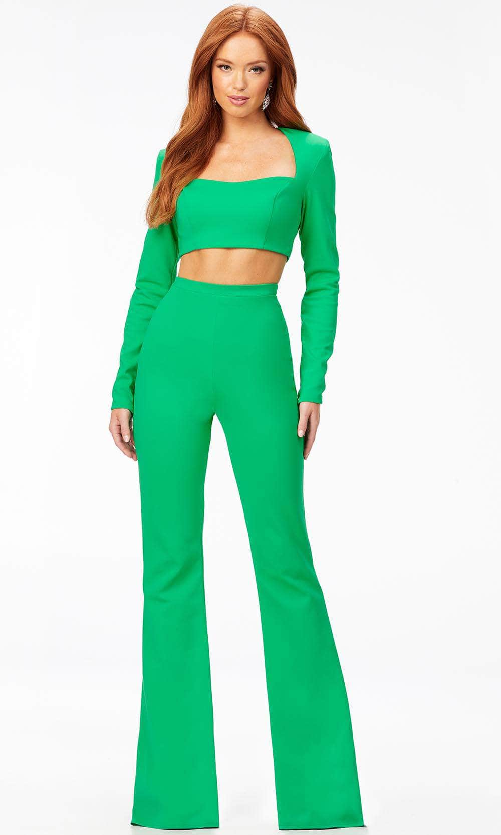 Wear this eye-catching formal jumpsuit by Ashley Lauren 11220. This lovely piece is tailored on a scuba fabric for a stretchy fit. It's a two-piece jumpsuit with a square neckline and long sleeves, as well as an open back. Because of the fit and flare design, these pants have a great contoured fit. The top and pants are held together by a concealed zipper at the back for a smooth finish. In this unbeatable masterpiece from the Ashley Lauren 11220 collection, you will be envied. Models are wearing Green, and Hot Pink colors.