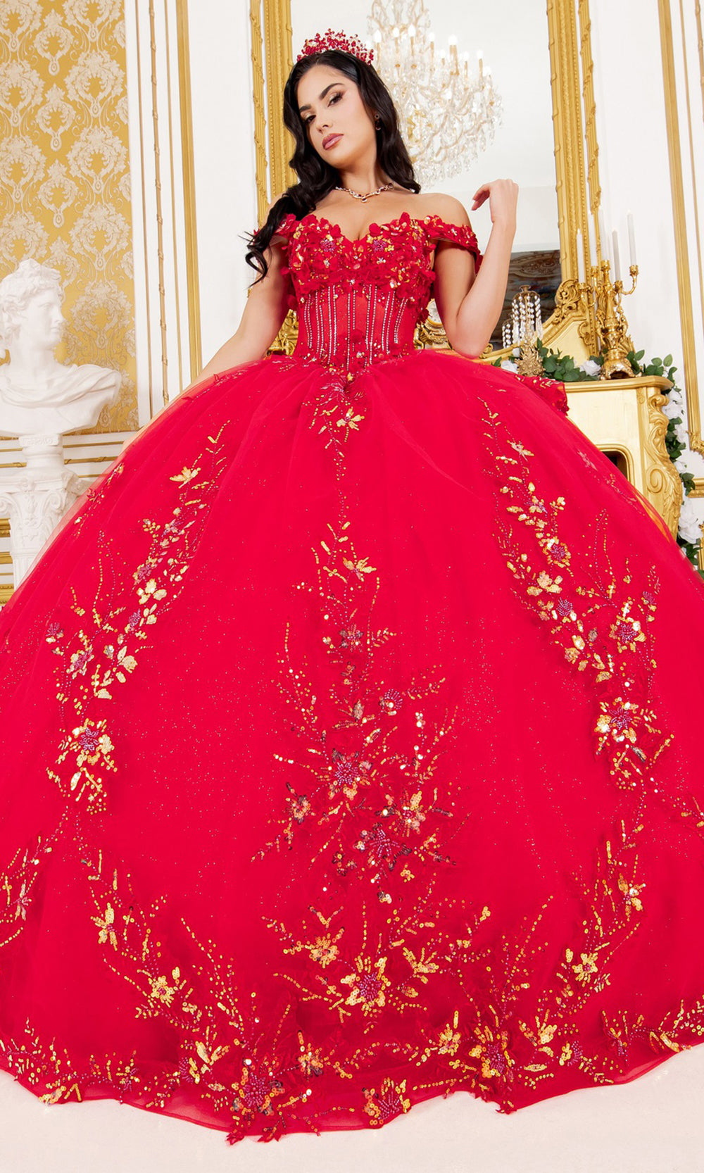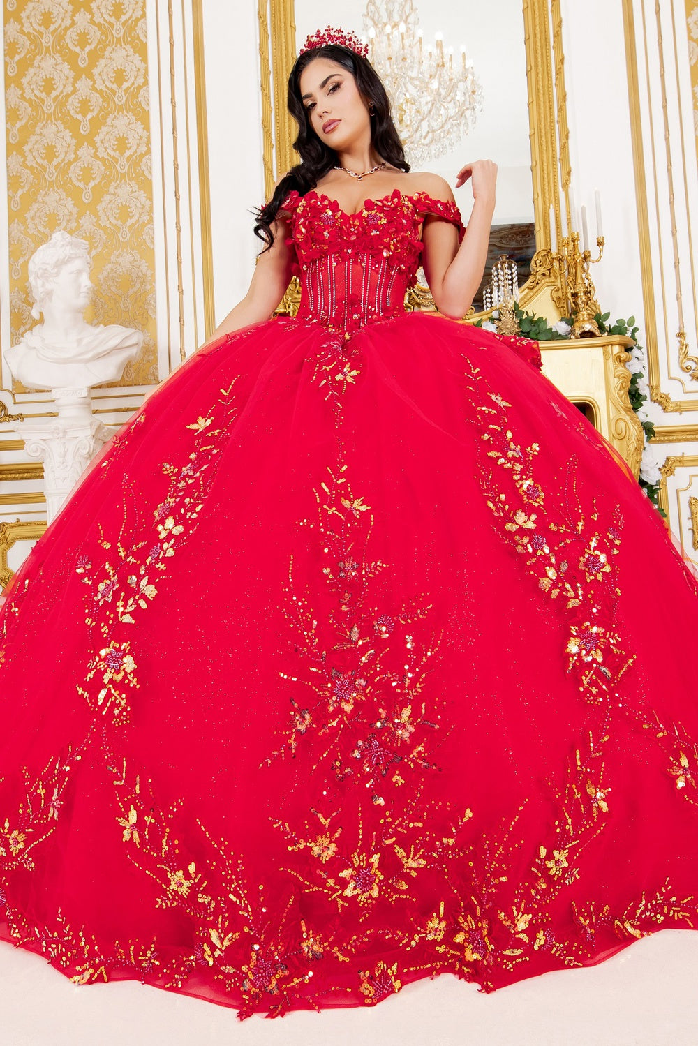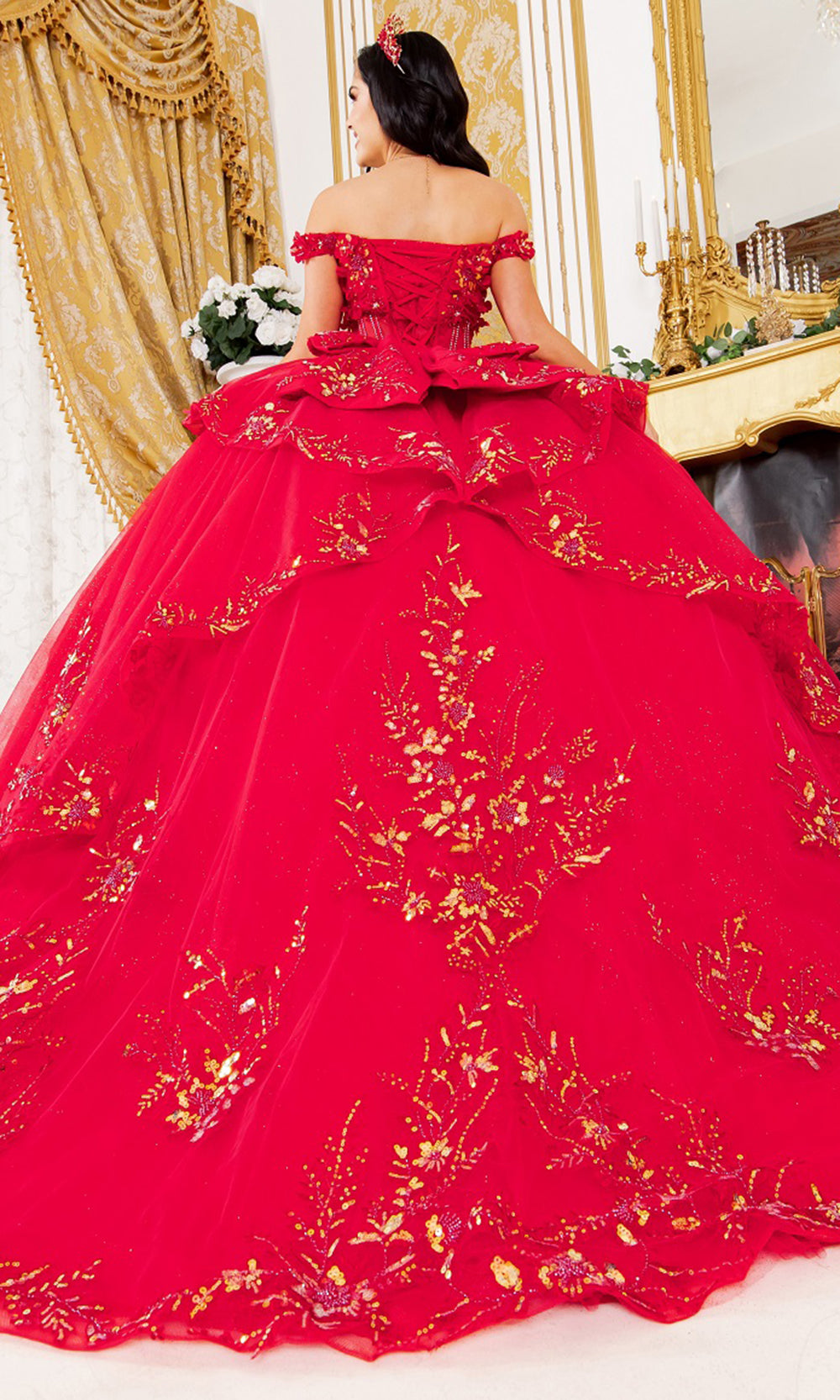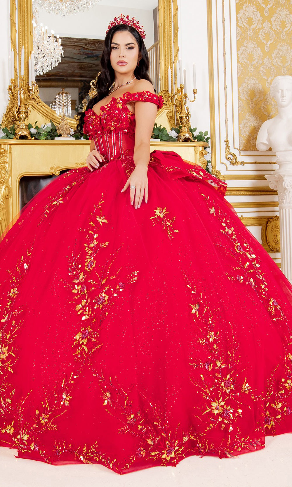 Leave a lasting impression with Cinderella Couture 8160J. This dramatic ball gown exudes romance through its lavish 3D floral details, embroidery and beading, delicately scattered across the bodice and skirt. The off-shoulder design frames the sweetheart neckline gracefully, while the sheer corset-style bodice enhances the silhouette with structured precision. The beaded lace glimmers under the light, accentuating the voluminous layered skirt. Cinderella Couture 8160J combines artistry and elegance, creating a masterpiece fit for royalty while allowing the wearer to radiate grace and confidence in every step. Models are wearing Lilac, Pink, and Red colors.