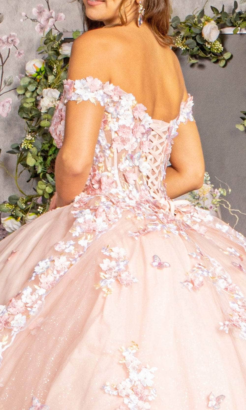 Prepare to be smitten with this whimsical Elizabeth K GL3182 ball gown. This gown exhibits a captivating off-shoulder neckline on a fitted corset bodice. The back is mid-open and is secured by a lace for a sophisticated finish. It is designed with the combination of floral appliques and embroidery, as well as beads and glitters, allowing you to look utterly fetching from any angles. A majestic monarch train will captivate onlookers, heightening your overall glamour. The night is yours in this spectacular Elizabeth K GL3182 masterpiece. Model is wearing Blush color.