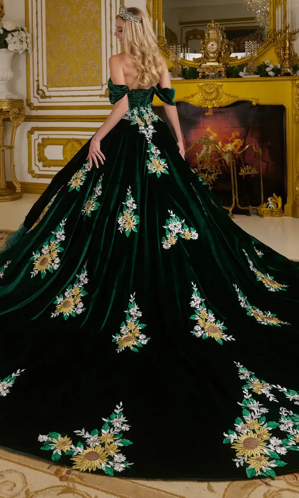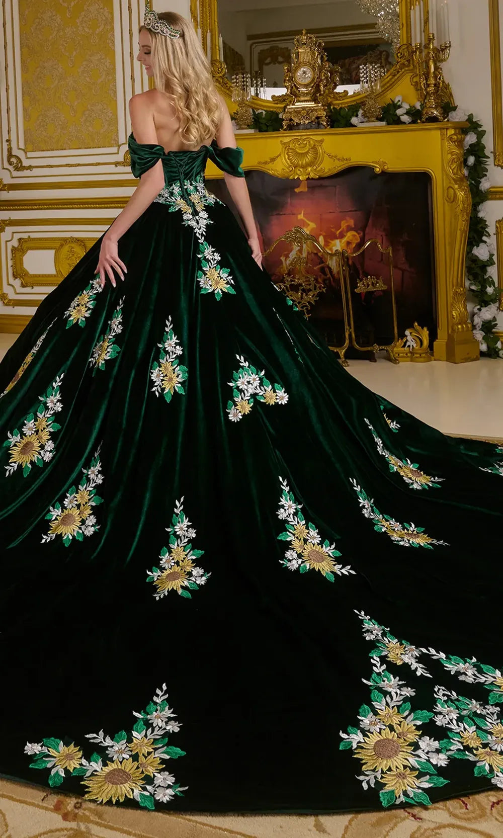 Luxury and romance come together beautifully in the Elizabeth K GL3637. The sweetheart neckline and detachable off-shoulder sleeves set the stage for a velvet bodice, delicately adorned with floral embroidery and sparkling jewels. With cascading organza ruffles, the ballgown skirt offers striking volume and a sense of grandeur. The lace-up back provides versatility and structure for comfort and elegance. Elizabeth K GL3637 is a gown that speaks of beauty and confidence, making it an extraordinary choice for life most precious occasions. Model is wearing E/M Green color.