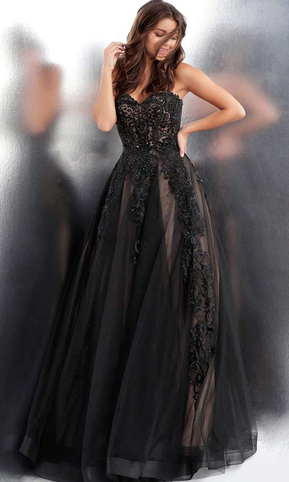 JVN by Jovani - Strapless Sweetheart Lace Ballgown JVN66970 - 1 pc Black/White In Size 2 Available