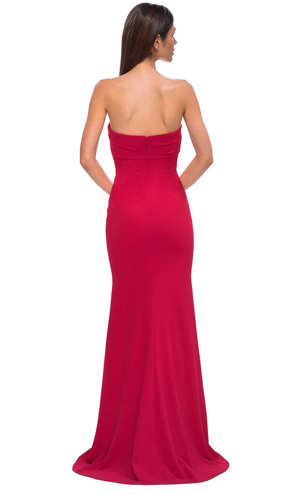 Make a statement in this memorable La Femme 32863 masterpiece. The gown has ruched and crisscross detailing that creates a captivating focal point. Its strapless design and sweetheart neckline accentuate your decolletage, while the alluring mid-open back is fastened by a hidden zipper. A thigh-high slit adds a touch of sexiness and elongates your legs, while the sheath skirt skims your curves and flows gracefully to the floor. This La Femme 32863 is the perfect gown to elevate your special night. Models are wearing Navy, Red, and Teal colors.