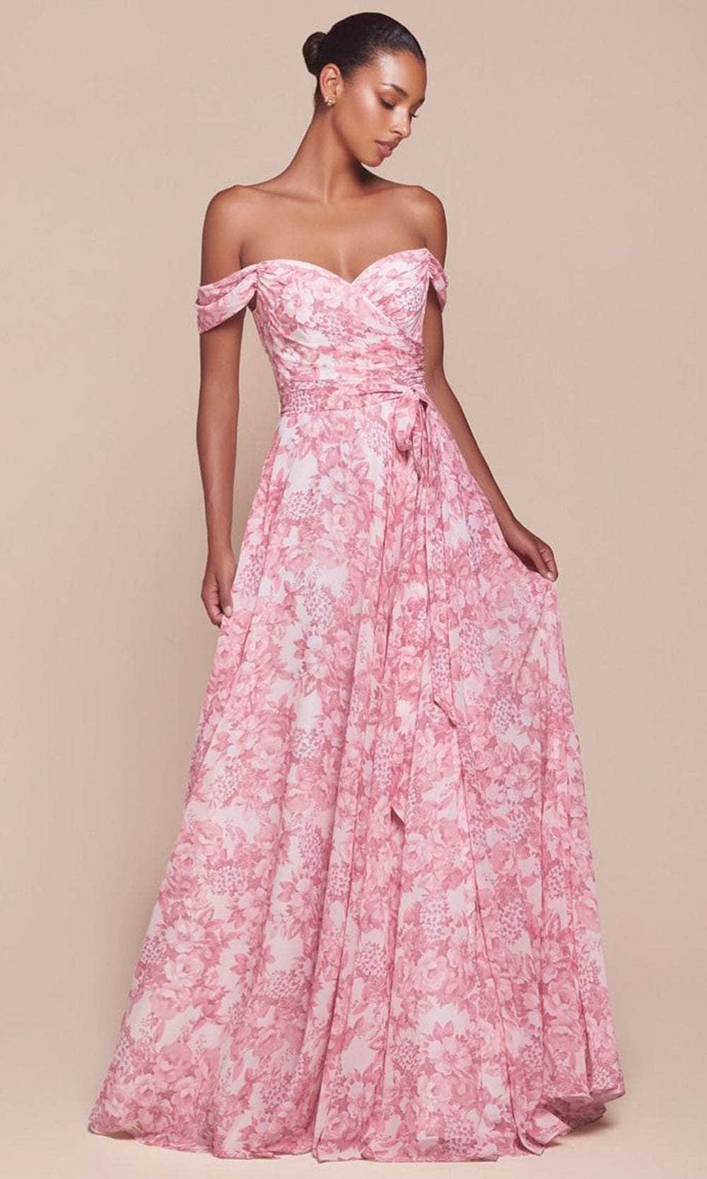 Elevate your enchanting allure and create unforgettable moments on your special night with the stunning Ladivine 7441 evening dress. This exquisite gown features a charming off-shoulder neckline paired with a beautifully pleated bodice, ensuring you radiate elegance. The sophisticated mid-open V back, secured with a discreet zipper, adds a refined touch to your look. Enhancing its appeal, the dress includes a detachable belt at the natural waist, perfectly complementing the floral print that adorns this enchanting creation. The classy A-line silhouette gracefully flows to the floor, allowing you to shine from every angle. Be the epitome of beauty and sophistication in this remarkable Ladivine 7441 masterpiece. Models are wearing Blue, and Rose colors.