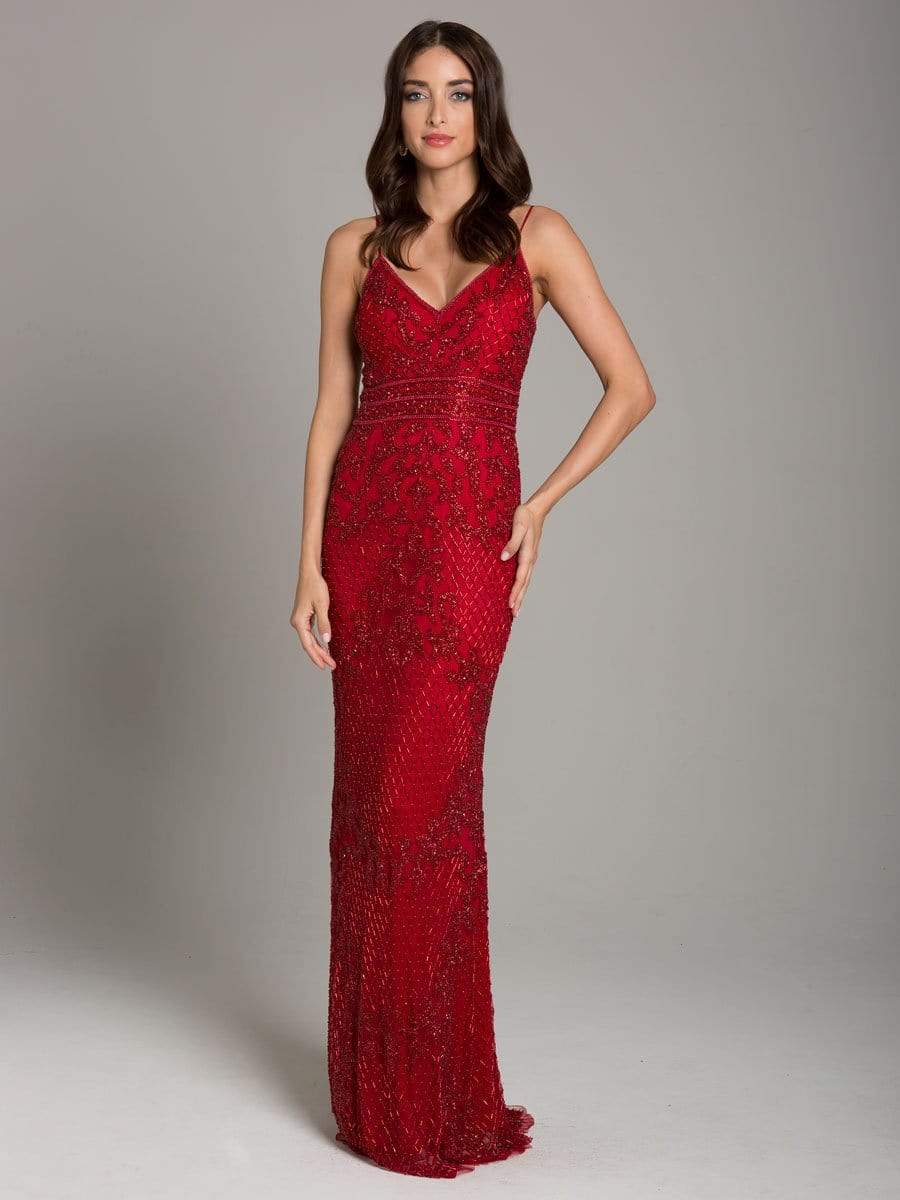 Turn into such an irresistible vision that will capture everyone's interest in this Lara Dresses - 29904 creation. This dress features a sleeveless V-neckline supported by thin shoulder straps. The bodice has a zipper closure and a form-fitting design embellished with lattice-like beading. The skirt features a figure-sculpted silhouette with a sweep train finish. Envision yourself in a black-tie event wearing this lovely masterpiece by Lara Dresses - 29904 and gliding through the evening with grace and elegance. Models are wearing Nude/Silver, Dark Blue, Red, Turquoise, and Wine colors.