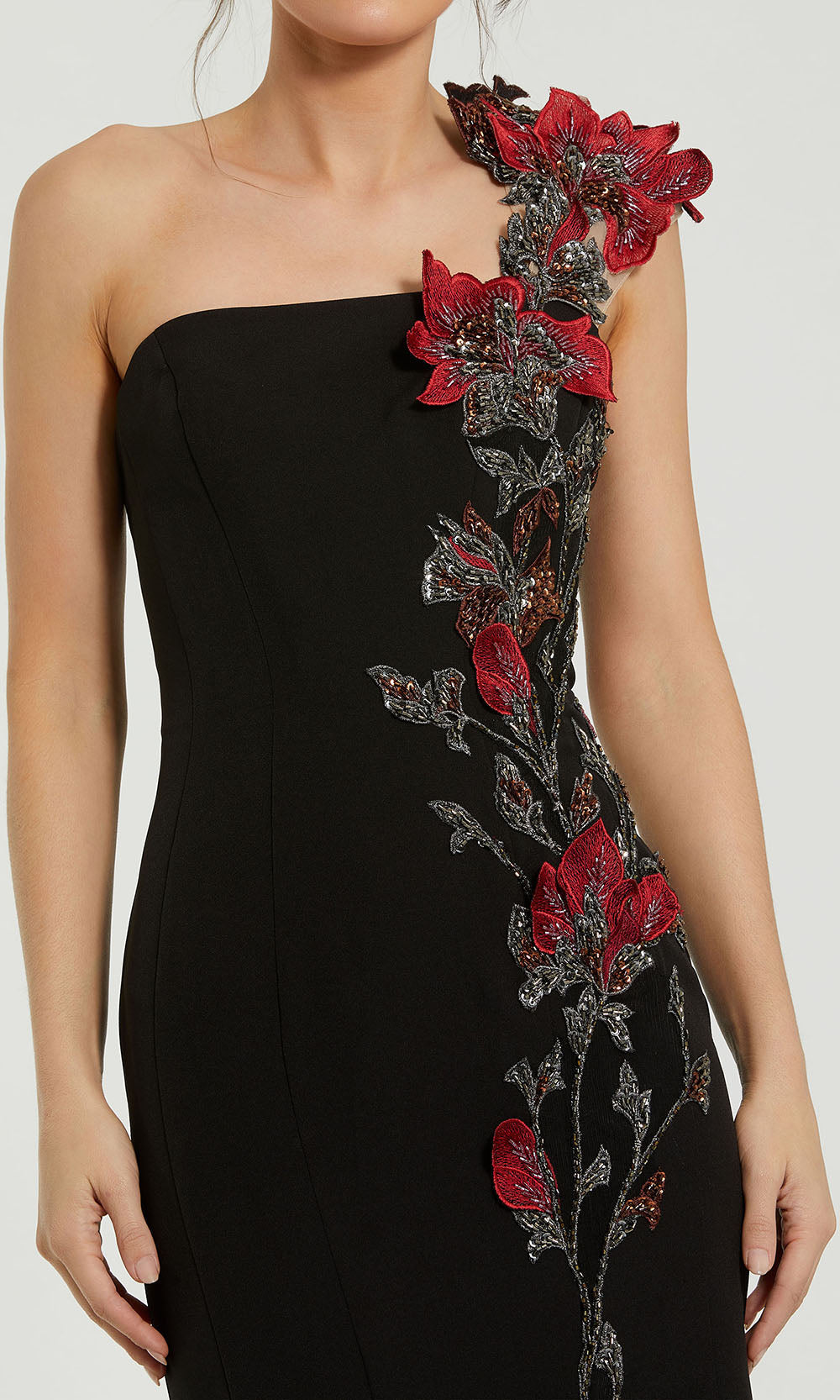 Designed for those who embrace elegance with a dramatic twist, Mac Duggal 11779 sleeveless dress stands out through dimensional florals and sculptural symmetry. Textured blooms and beadwork climb gracefully across the bodice from shoulder to hip, while the asymmetric neckline offers bold, modern asymmetry. The mermaid silhouette balances curve and flow, offering definition without sacrificing ease. With its blend of soft floral motifs and precise tailoring, Mac Duggal 11779 elevates any event with poise and high-fashion impact in every detail. Model is wearing Black Multi color.