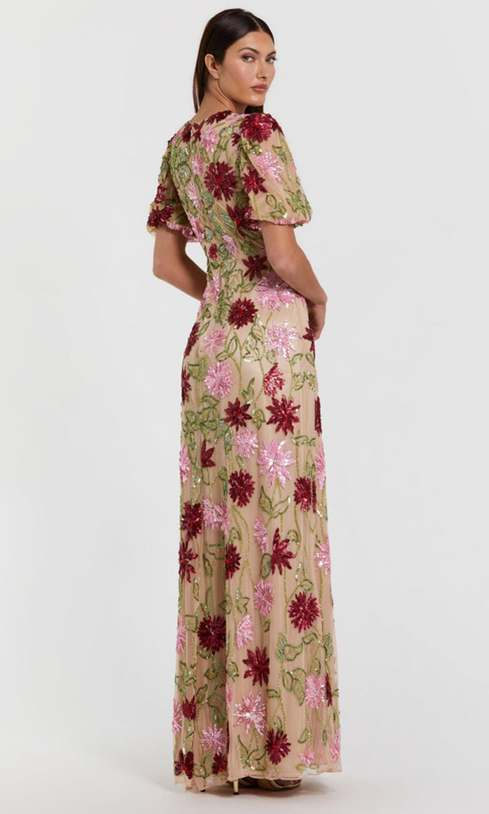 | Details: | Short Puff Sleeves, Sequin, Floral Beading, Embroidery, Full Back, Floor Length |