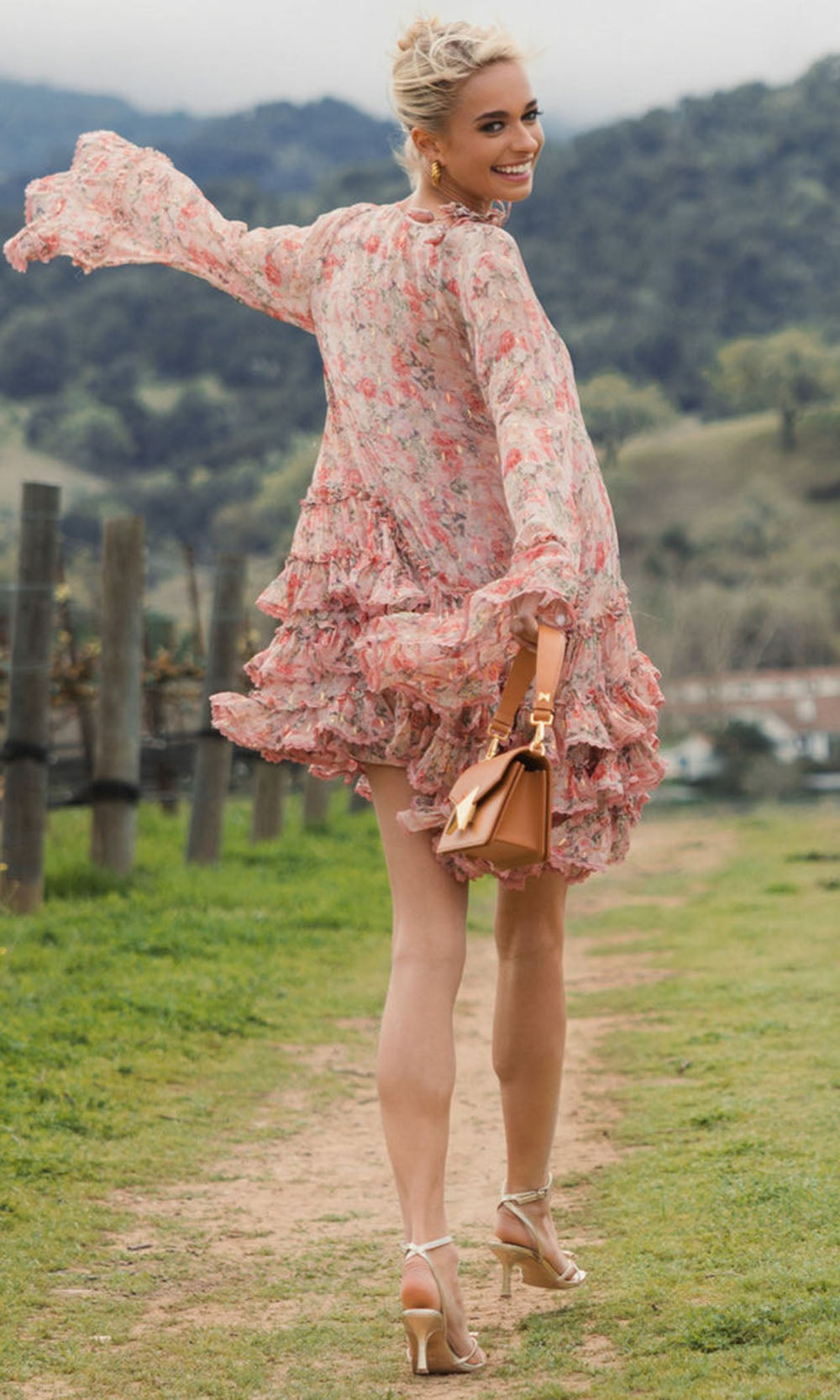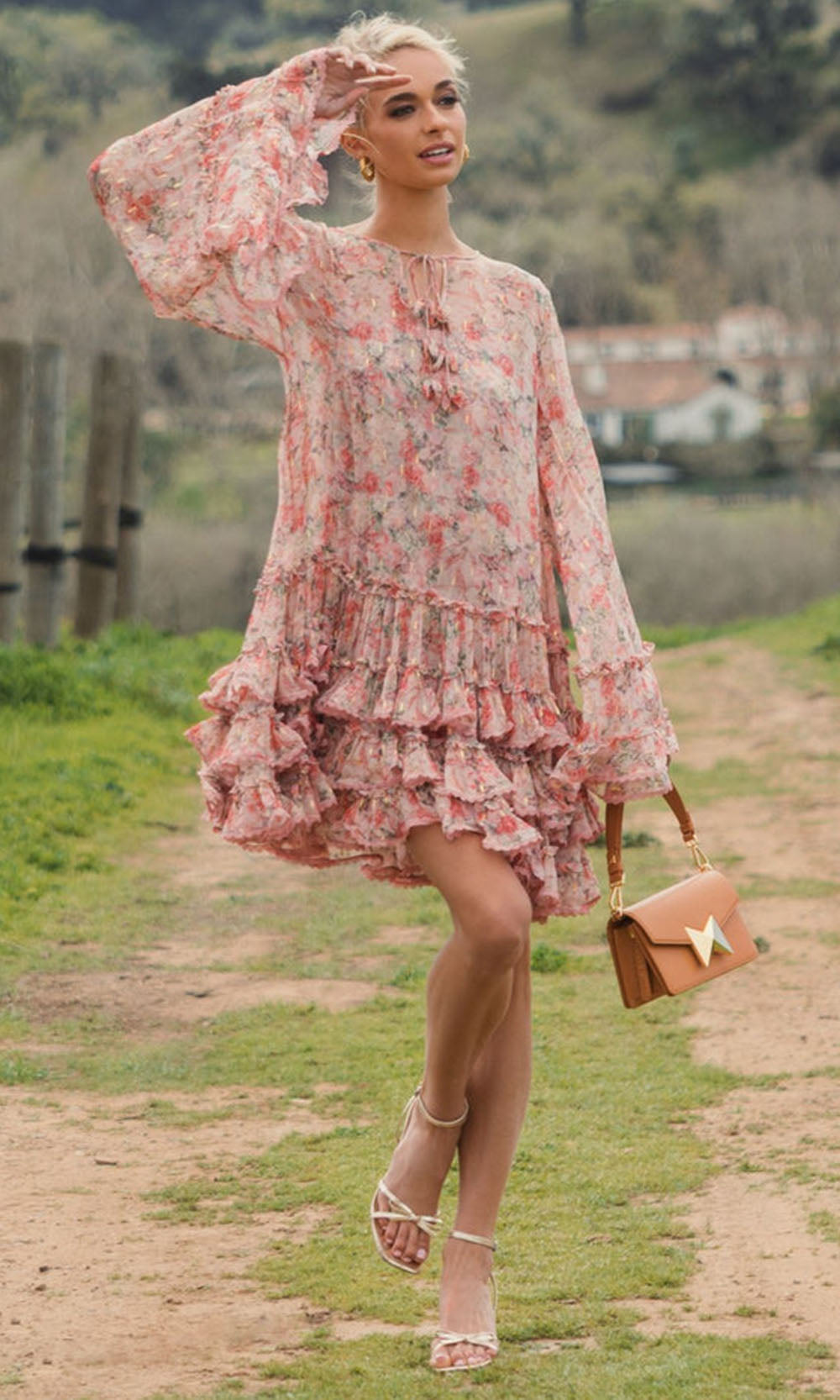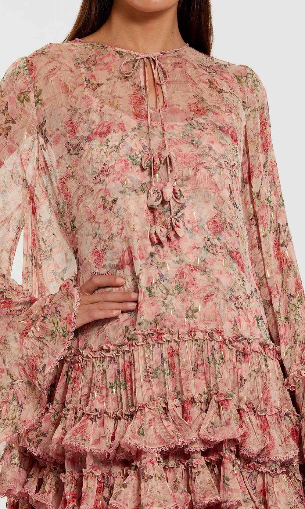 | Details: | Long Sleeves, Ruffle Tiered Skirt, Floral Prints, Full Back, Front Tie Closure |