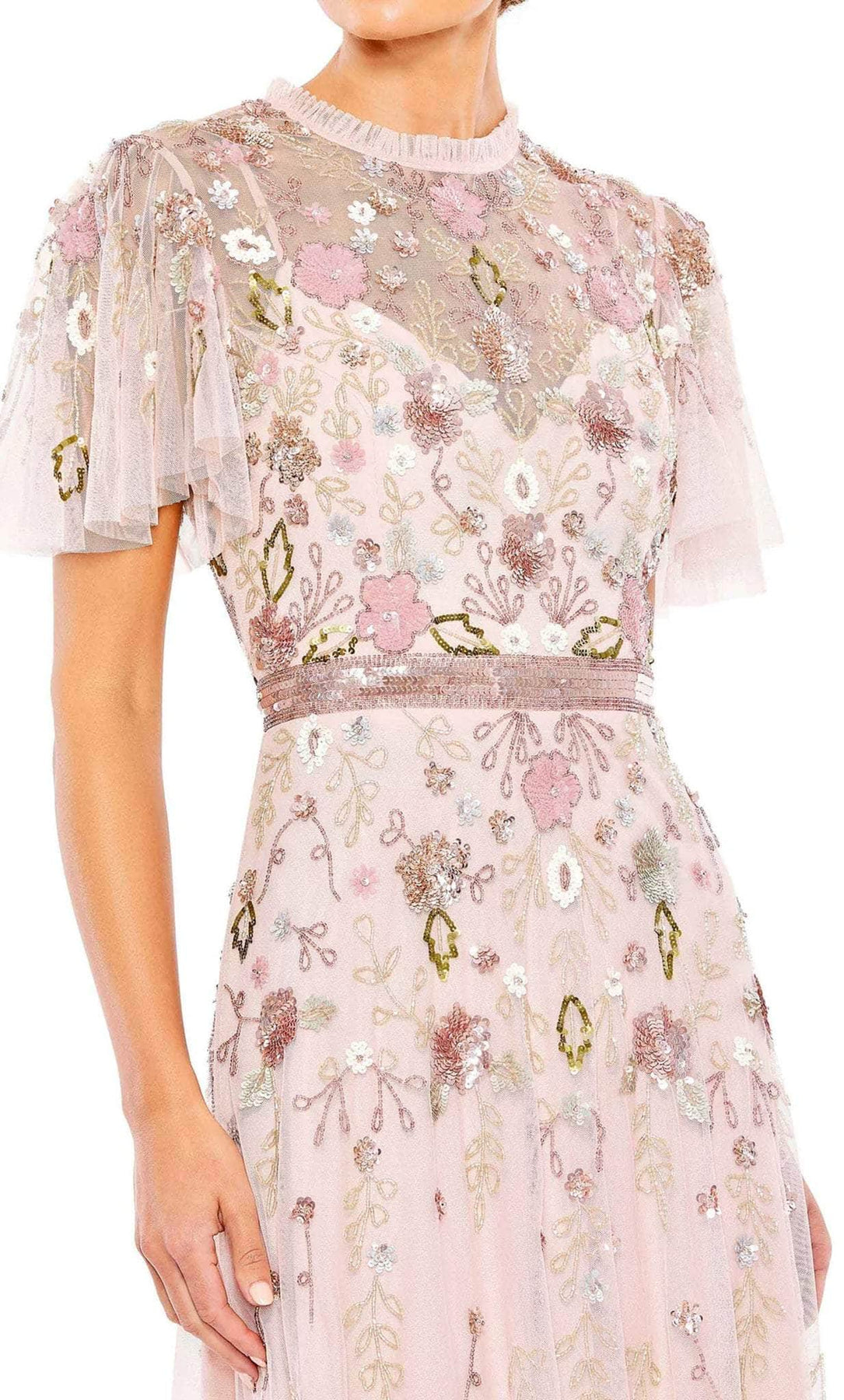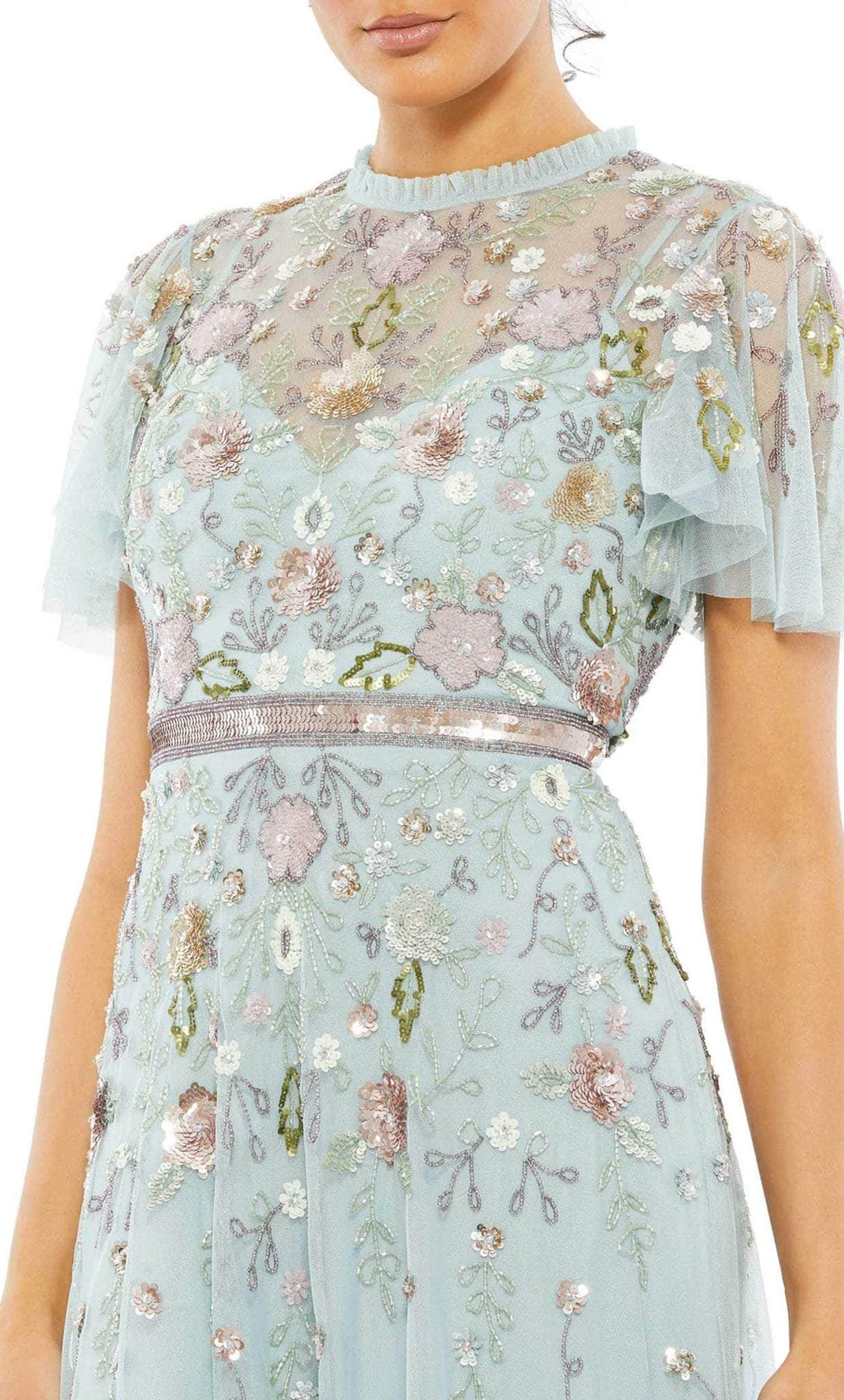 Transform yourself into a stunning beauty by donning this utterly gorgeous Mac Duggal 9136 dress. This lovely dress flaunts sheer short sleeves in a butterfly-inspired pattern framing the high neckline. From the bodice to the A-line skirt with a center zipper closure, a graceful floral pattern of sequin and bead embellishment is adorned. You will draw attention wherever you go when wearing this Mac Duggal 9136 masterpiece. Models are wearing Silver Peony & Mint Multi colors.