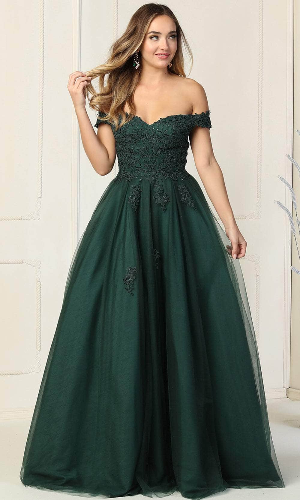 Embrace the stunning perfection of this masterpiece by May Queen MQ1866. Embellished with embroidered floral details and beadwork, this gown features an off-shoulder sweetheart neckline with a semi-sheer back. The glitter tulle skirt flares to create a ball gown in full length. Wherever you go, whatever you wear, leave a long-lasting impression on the gathering with the May Queen collection of dresses for bridal, bridesmaid, prom, homecoming, cocktail, formal, semi-formal, and many more designs. Be blown away by the lushness of this May Queen MQ1866 creation. Models are wearing Dustyblue, Dustyrose, And Huntergreen colors.