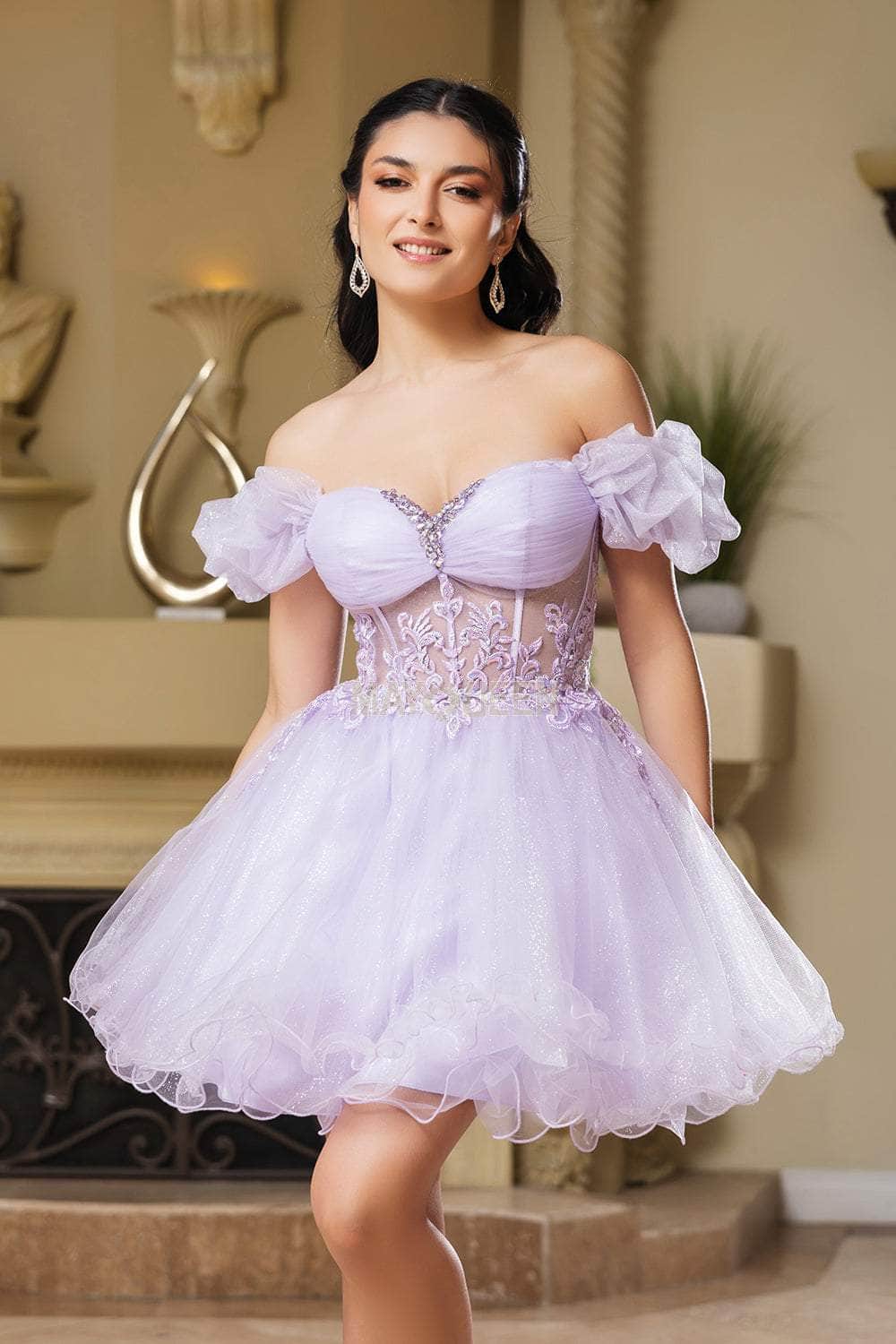 May Queen MQ2164 - Puff Sleeve A-line Party Dress Cocktail Dresses 2 /  Lilac
