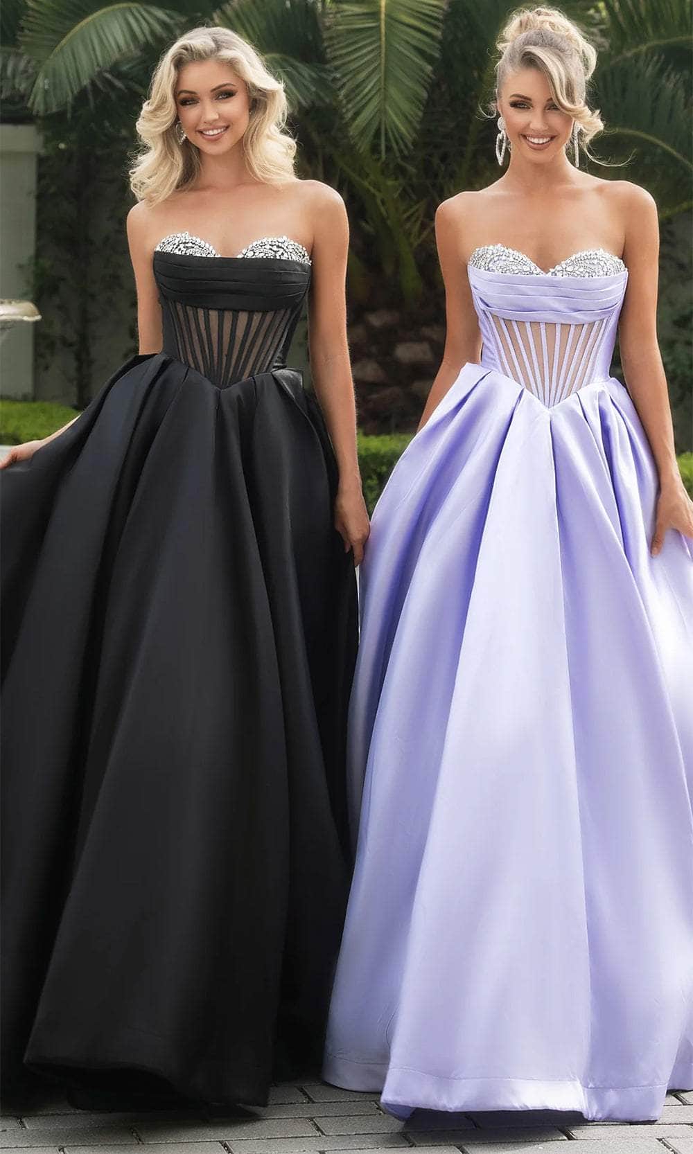 Exude timeless elegance in the Portia and Scarlett PS25306 prom dress, a captivating design with a sleek silhouette expertly tailored for a flawless fit. The strapless bodice, embellished with detailed beadwork, highlights the neckline and shoulders beautifully. The exposed boning adds both structure and sophistication to the look. With a full, voluminous skirt that creates a dramatic, fairytale effect, you’ll feel like royalty. This Portia and Scarlett PS25306 masterpiece is ideal for prom night, showcasing your grace and glamour. Models are wearing the Hot Pink, Black, and Lilac colors.