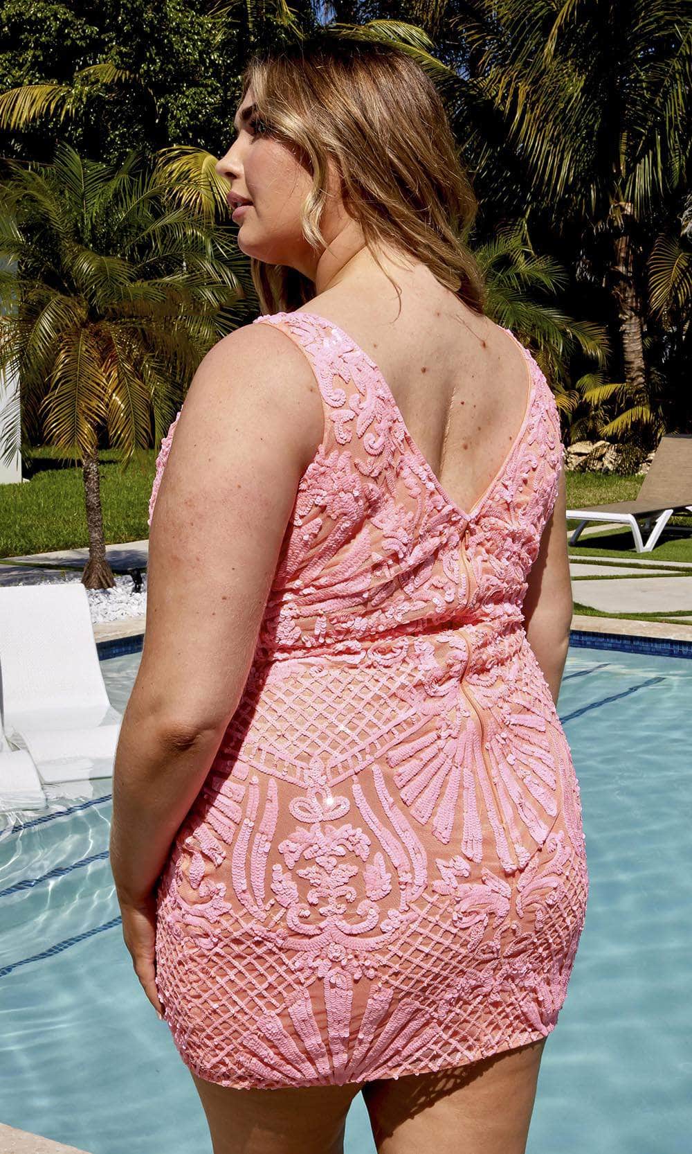 Primavera Couture 14024 will make you the picture of elegance and appeal. This sleeveless party dress features an elegant V-neckline and a fitted bodice that nicely sculpts the shape. The exposed back emanates confidence and sensuality and is fastened by a sleek back zipper. The short skirt displays a gorgeous sheath silhouette that emphasizes every curve with poise and grace. This Primavera Couture 14024 is made to stand out and provide a lasting impression of timeless beauty, whether it's for a formal evening event or a special occasion. Models are wearing Apple Green, Black Neon Pink, Coral, Purple and Yellow colors.