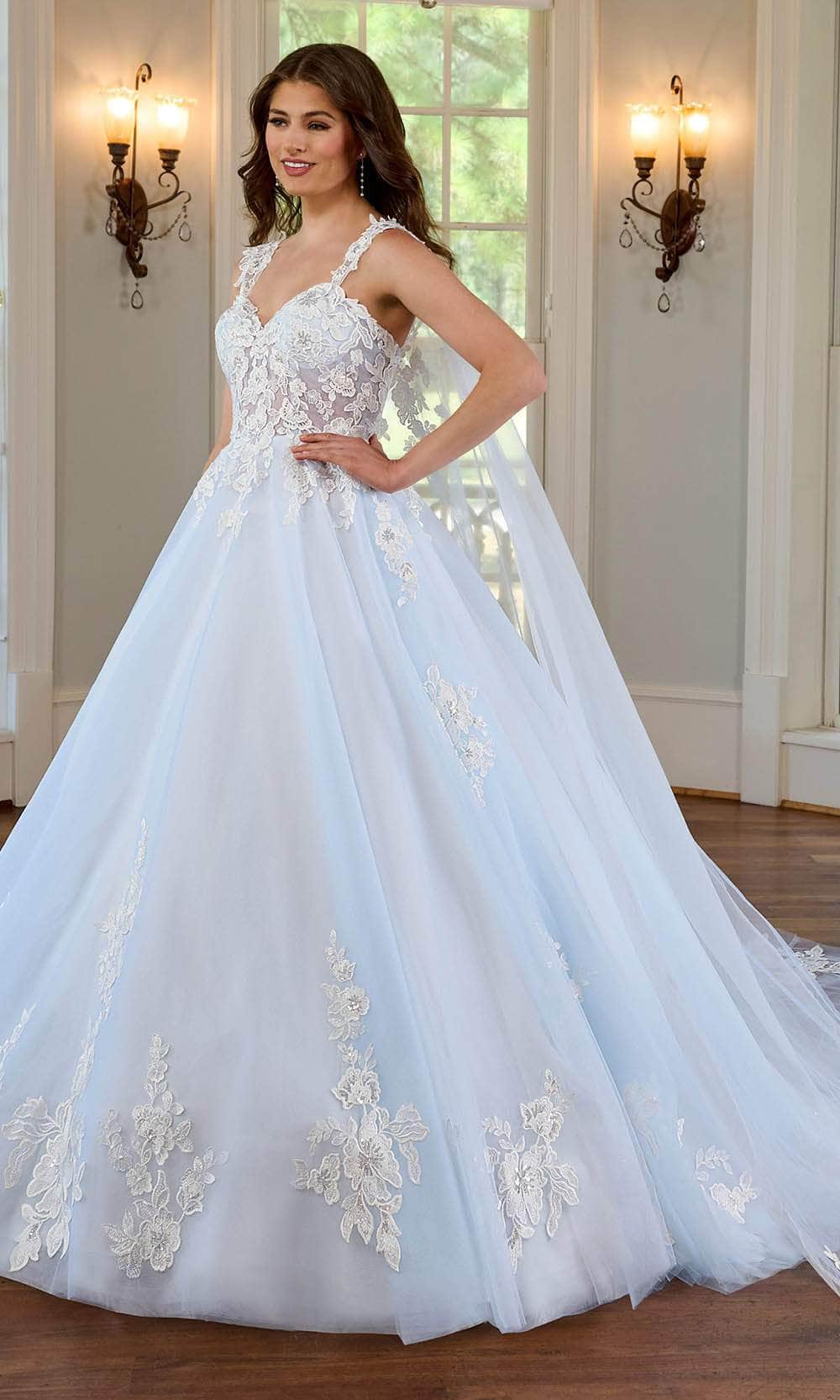 Join us in celebrating your beauty in a stylish creation from Rachel Allan RB4182. This strapless gown has a stunning feminine touch and charm thanks to the flower embroidery and glittering sequin embellishment. The sweetheart neckline, illusion detail, and lace-up closure at the midrise back are features of the top bodice. A full-length ballgown skirt that elegantly cascades to the hemline completes the ensemble. The illusion detachable long cape falls over your shoulders and reaches the chapel train provide even more drama. Have all the attention on you when making your entrance wearing this Rachel Allan RB4182 masterpiece. Model is wearing Ivory Light Blue color.