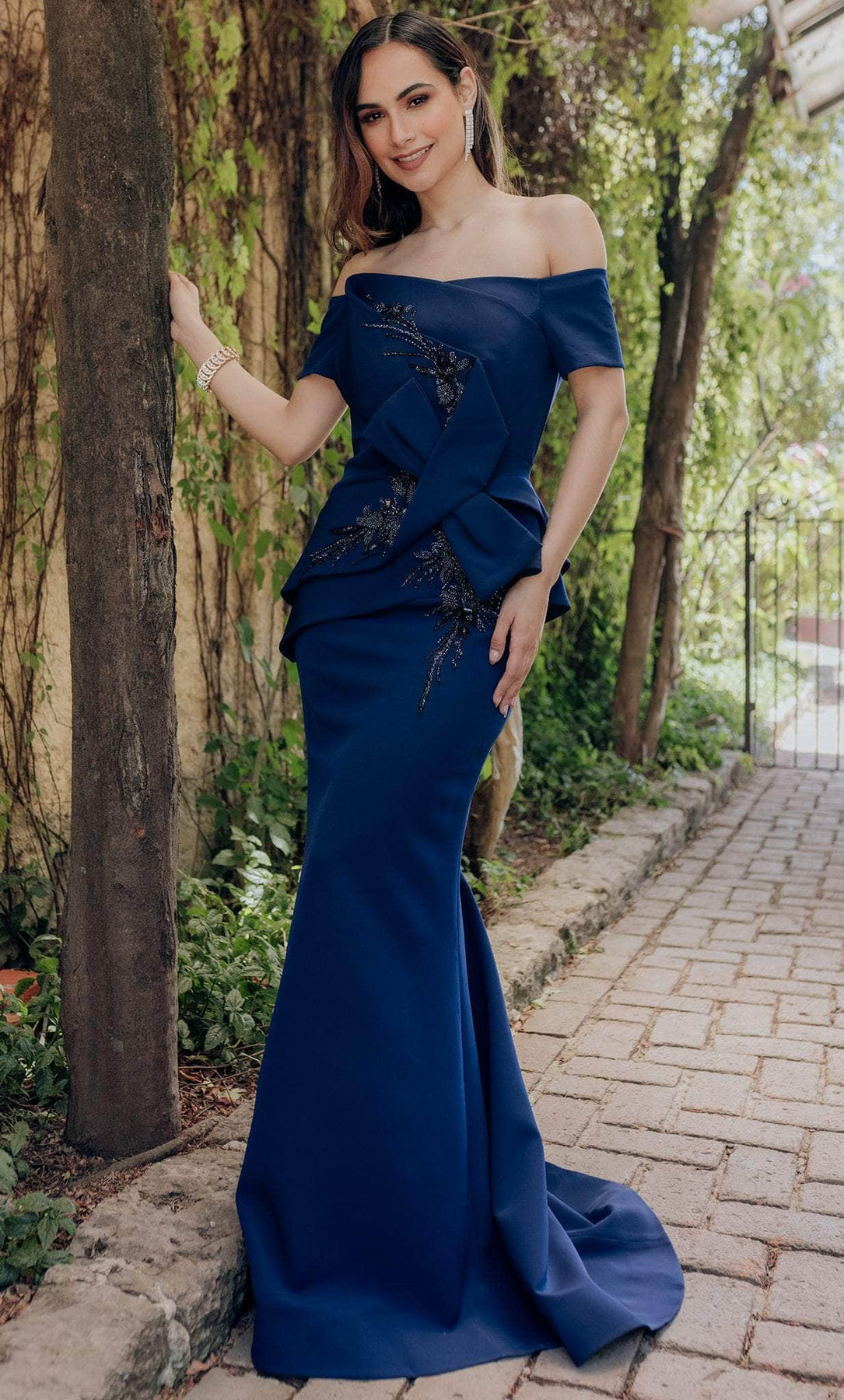 Command attention and radiate elegance in Terani Couture 232M1561 dress. This captivating ensemble allows you to make a bold statement with its mermaid off-shoulder design. The off-shoulder neckline exudes allure, while the fitted mermaid silhouette accentuates your curves with grace. Prepare to be mesmerized by the stunning beaded bodice, adding a touch of opulent glamour. With a convenient zipper and hook and eye closure, this gown ensures a flawless fit. Captivate hearts with this exquisite Terani Couture 232M1561 masterpiece that embodies sophistication and timeless beauty. Models are wearing Navy and Wine colors.