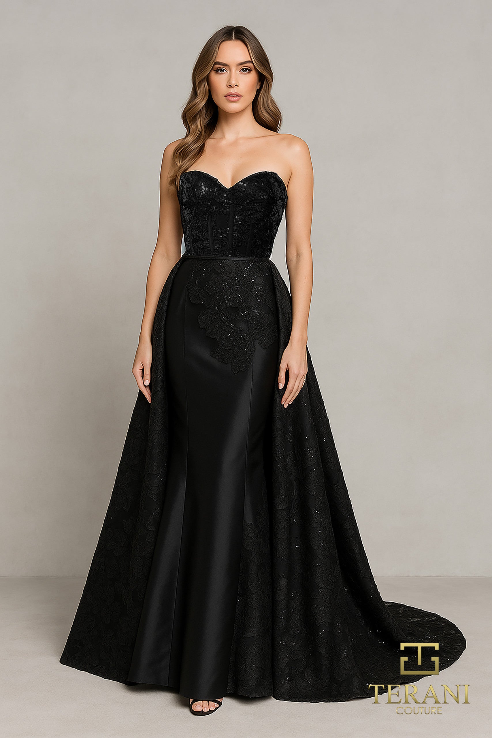 Terani Couture 252E5134 - Corset Sheath Gown with Overskirt