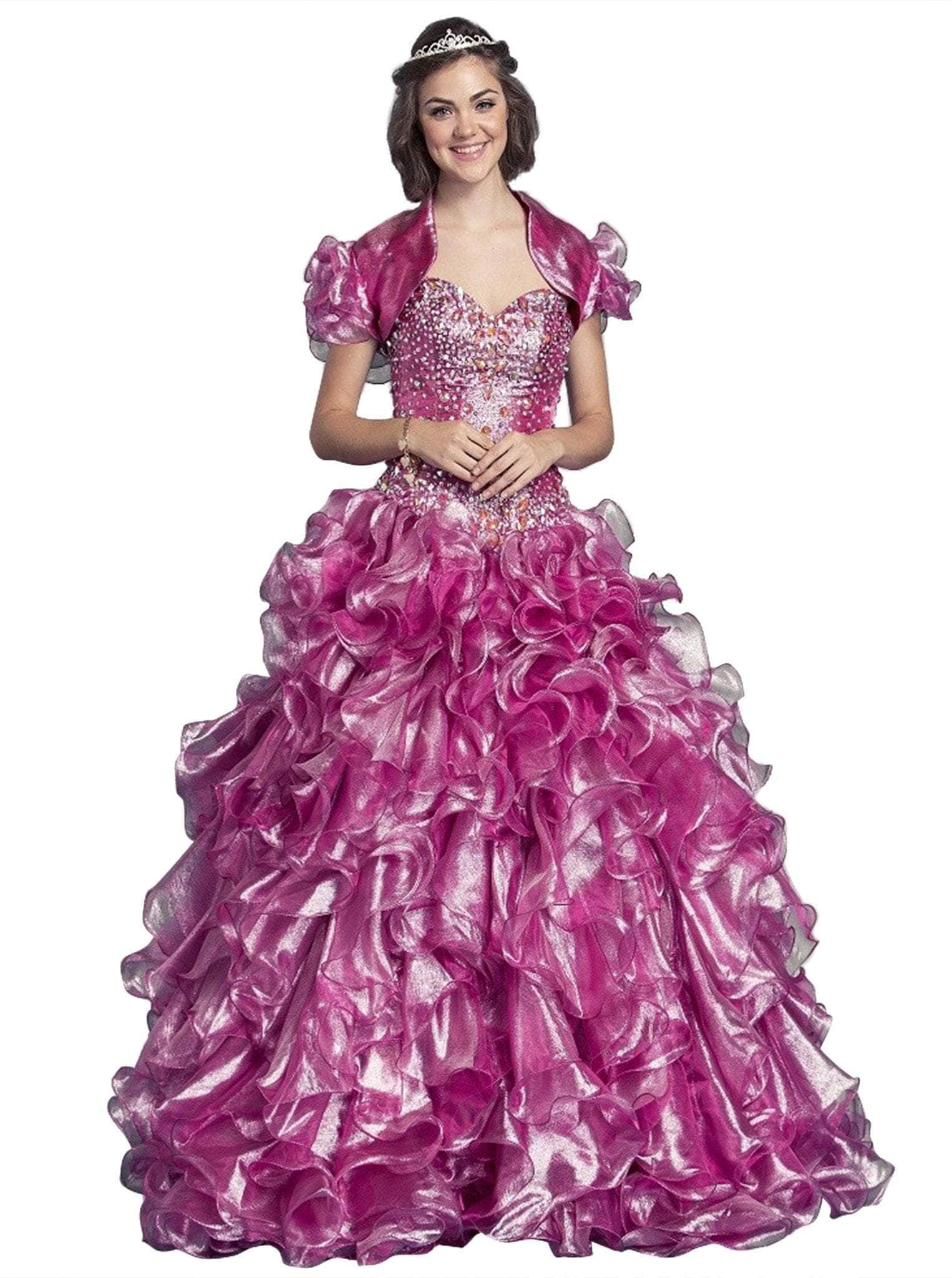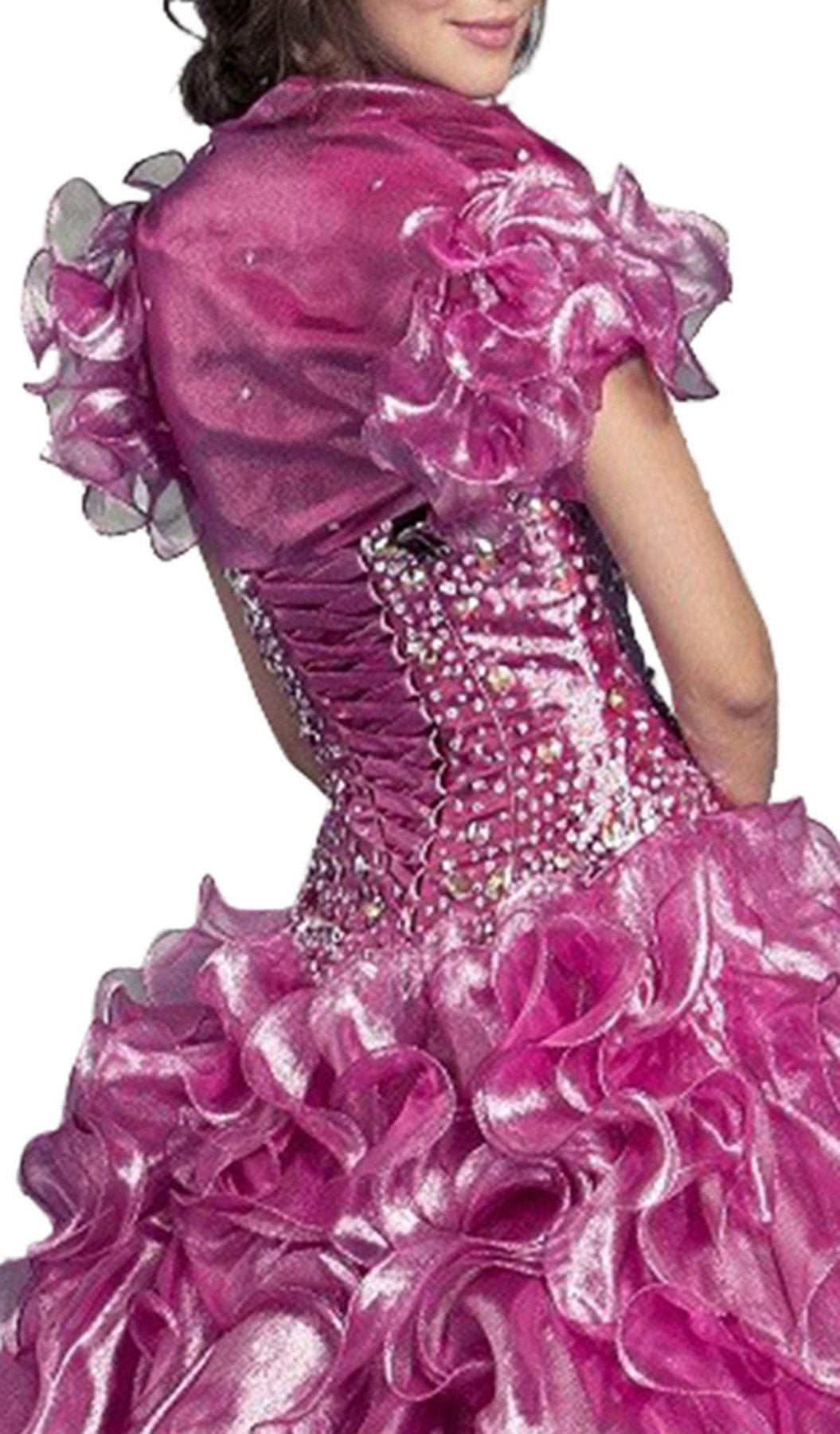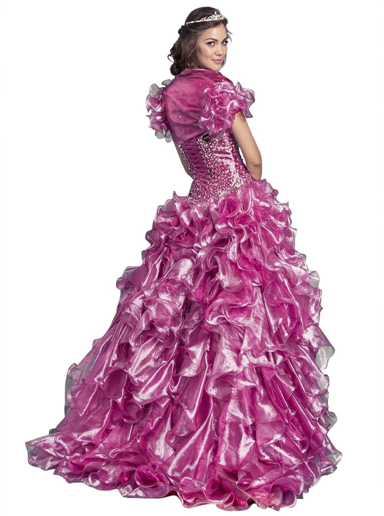 Stunning and chic, this sumptuous creation by Trevi Collection L1358 matches your elegant persona. Stylishly graced with beaded embellishment, this long strapless dress features a sweetheart neckline on a fitted bodice secured with a lace-up back closure for a close fit. From its basque waist, the voluminous ruffled tulle skirt flourishes to a ball gown silhouette as it cascades to a full length hemline. A bolero jacket completes the dress. This masterpiece by Trevi Collection L1358 will definitely bring out the inner goddess in you. Model is wearing the Wine color.