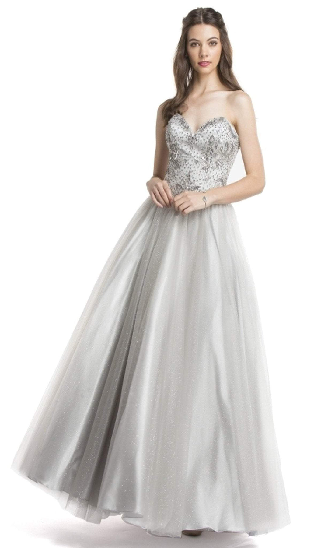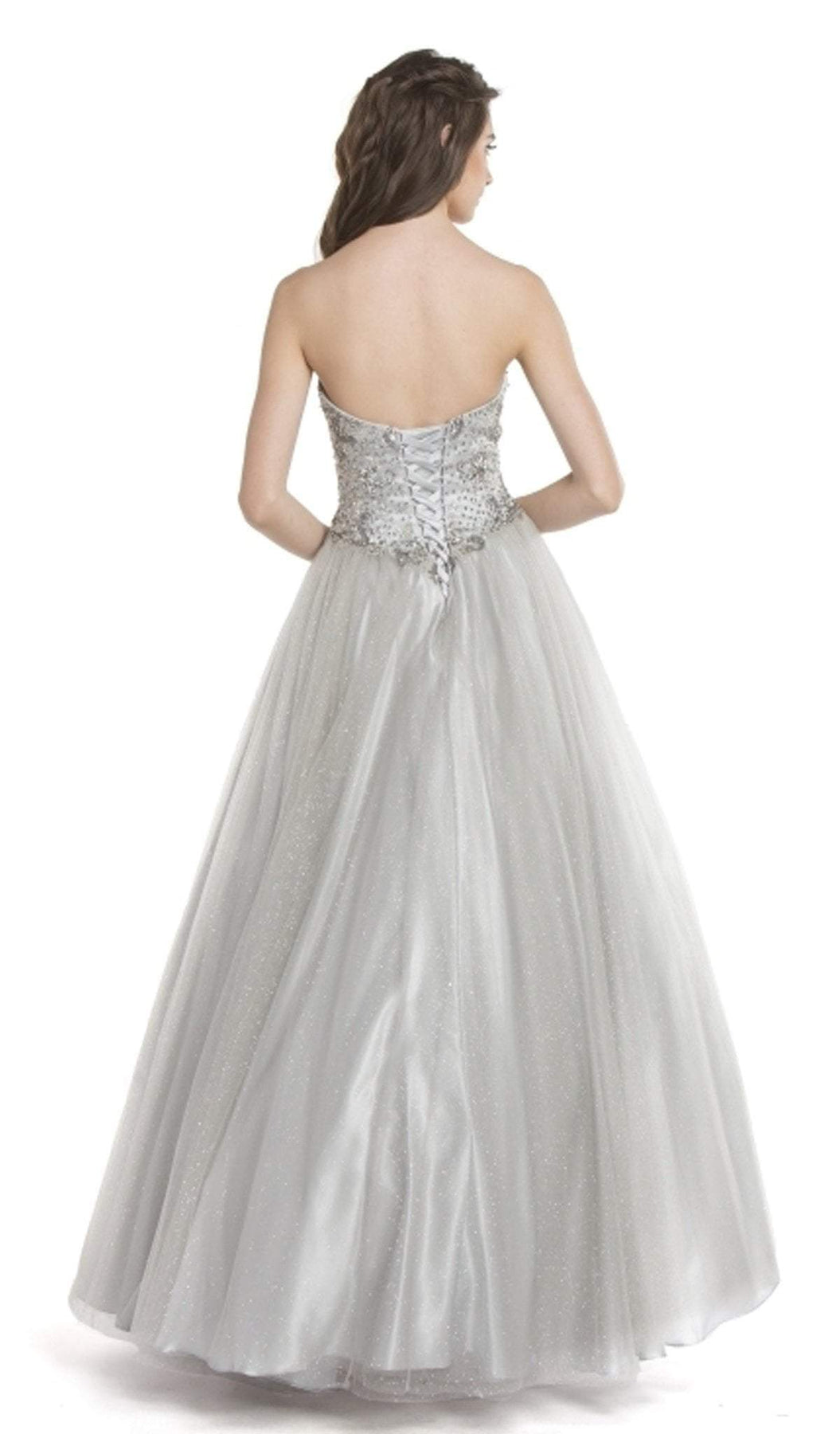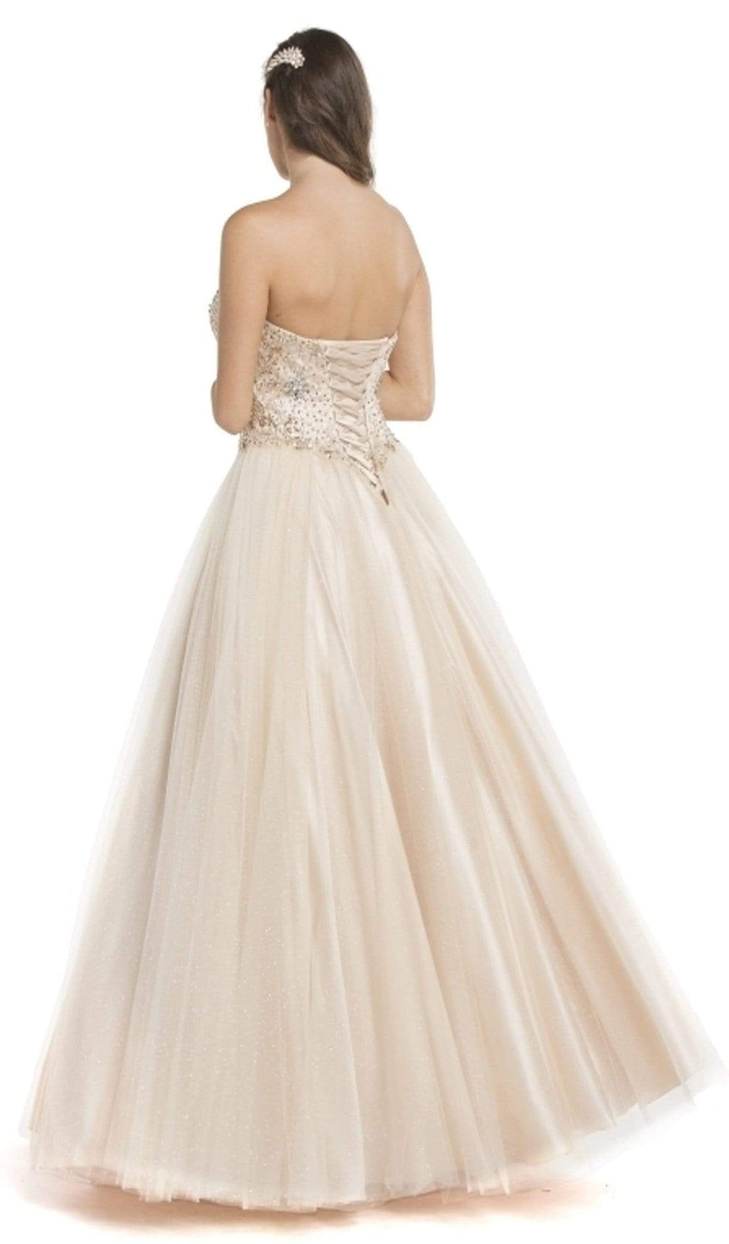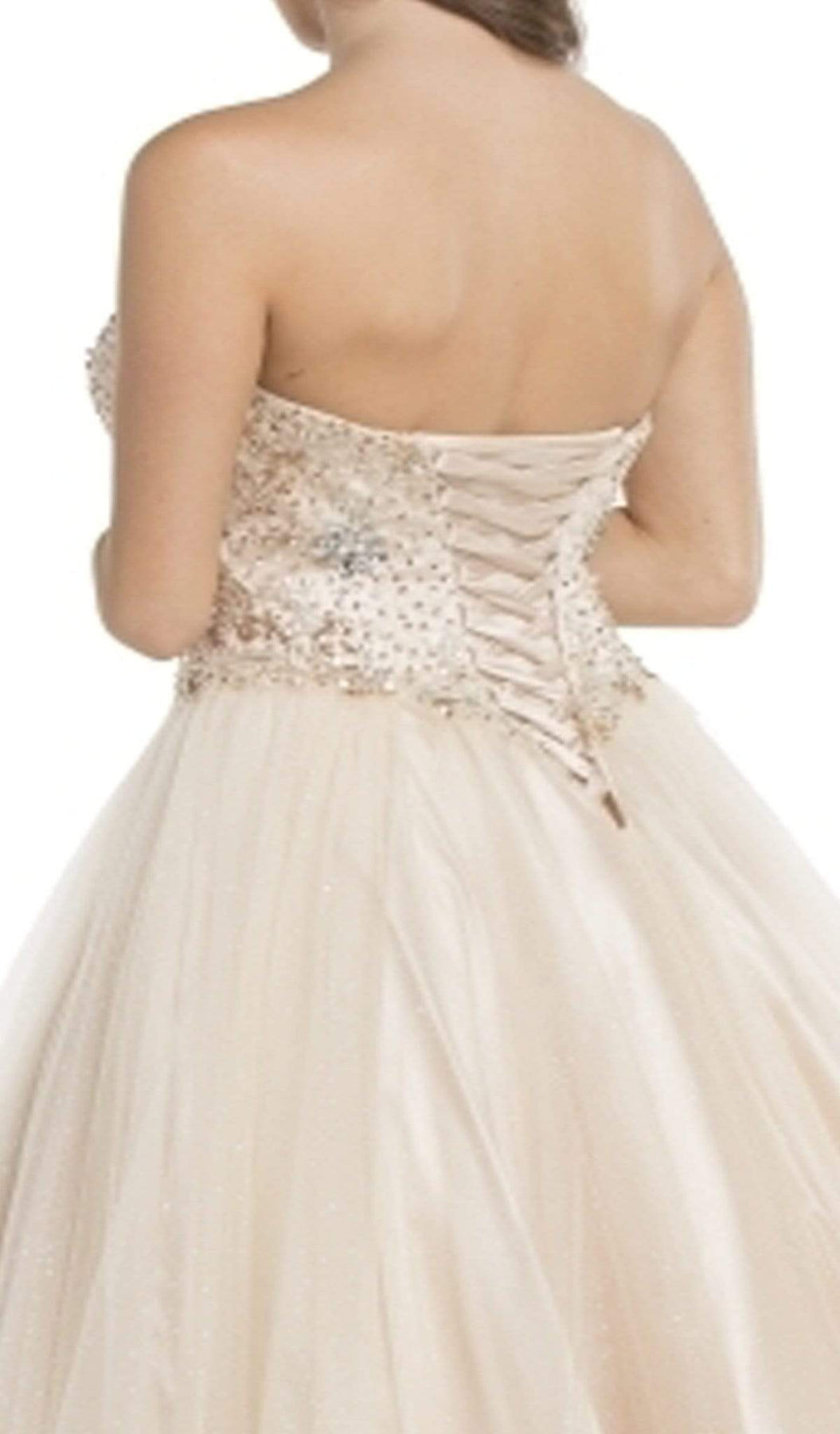 Trevi Collection L1534 masterpiece will transform you into a vision of beauty. The strapless bodice has a pronounced sweetheart neckline and an open mid-back. The top is adorned with stunning embellishments, and the skirt falls into waves of perfect pleats that taper to a full-length hem. The corset closure secures the back for a custom fit. Go above and beyond in a precious gown by Trevi Collection L1534. Models are wearing Champagne and Off White colors.
