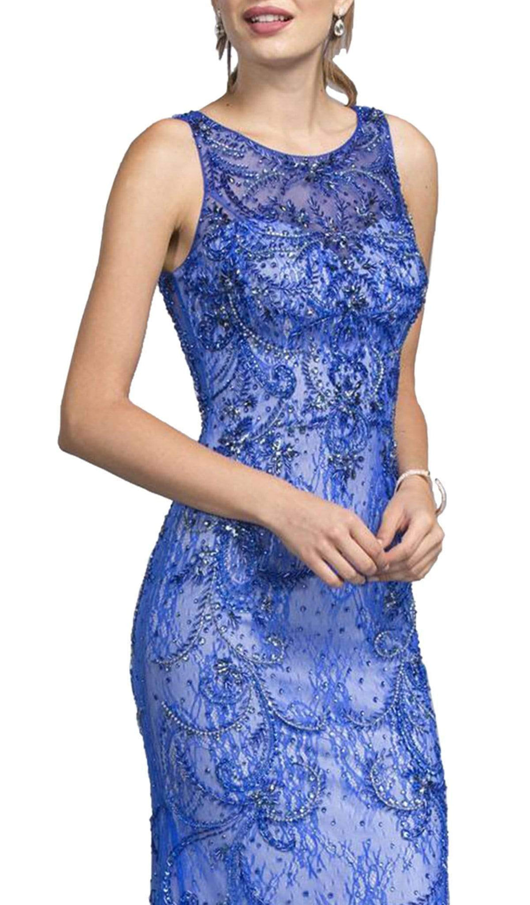 Exude a charm that is meant to mesmerize the elite crowd in this gorgeously decadent Trevi Collection L1940 creation. Fashions a sleeveless, bateau neckline with fitted bodice ornate with embellishments. The dress has a sheer back while the skirt flourishes towards the floor in a fitted silhouette. Leave a trail of admirers as you glisten in beauty in this Trevi Collection masterpiece.