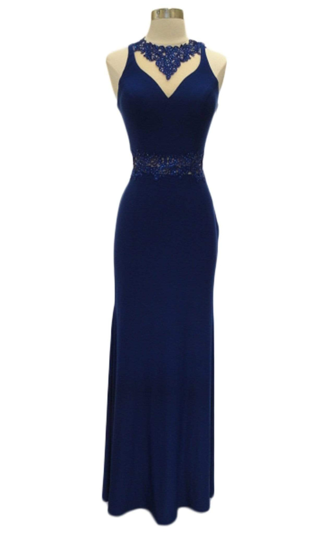 Be the spectacular belle on your next formal event in this full length gown by Trevi Collection L1986. Fashions a sleeveless, jewel neckline with v-lined bodice designed with embellishments. The dress is styled with a sheer embellished back and waist while the skirt runs in full length hem to a sweep train finish. Be pretty in Trevi Collection masterpiece.