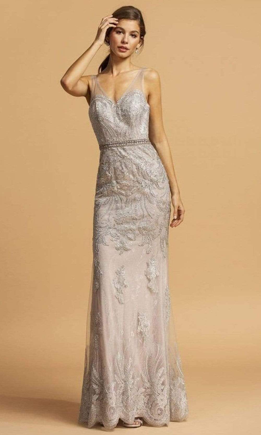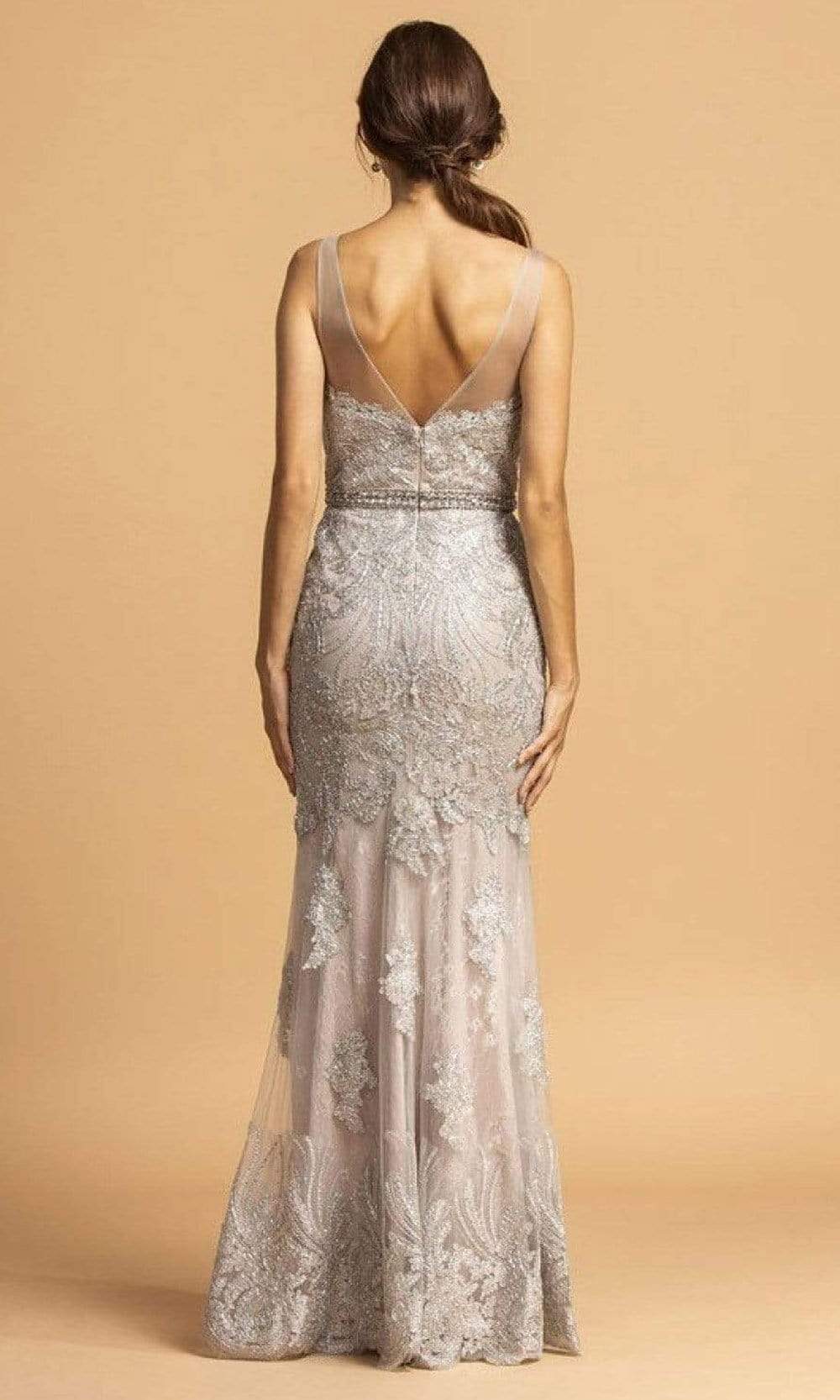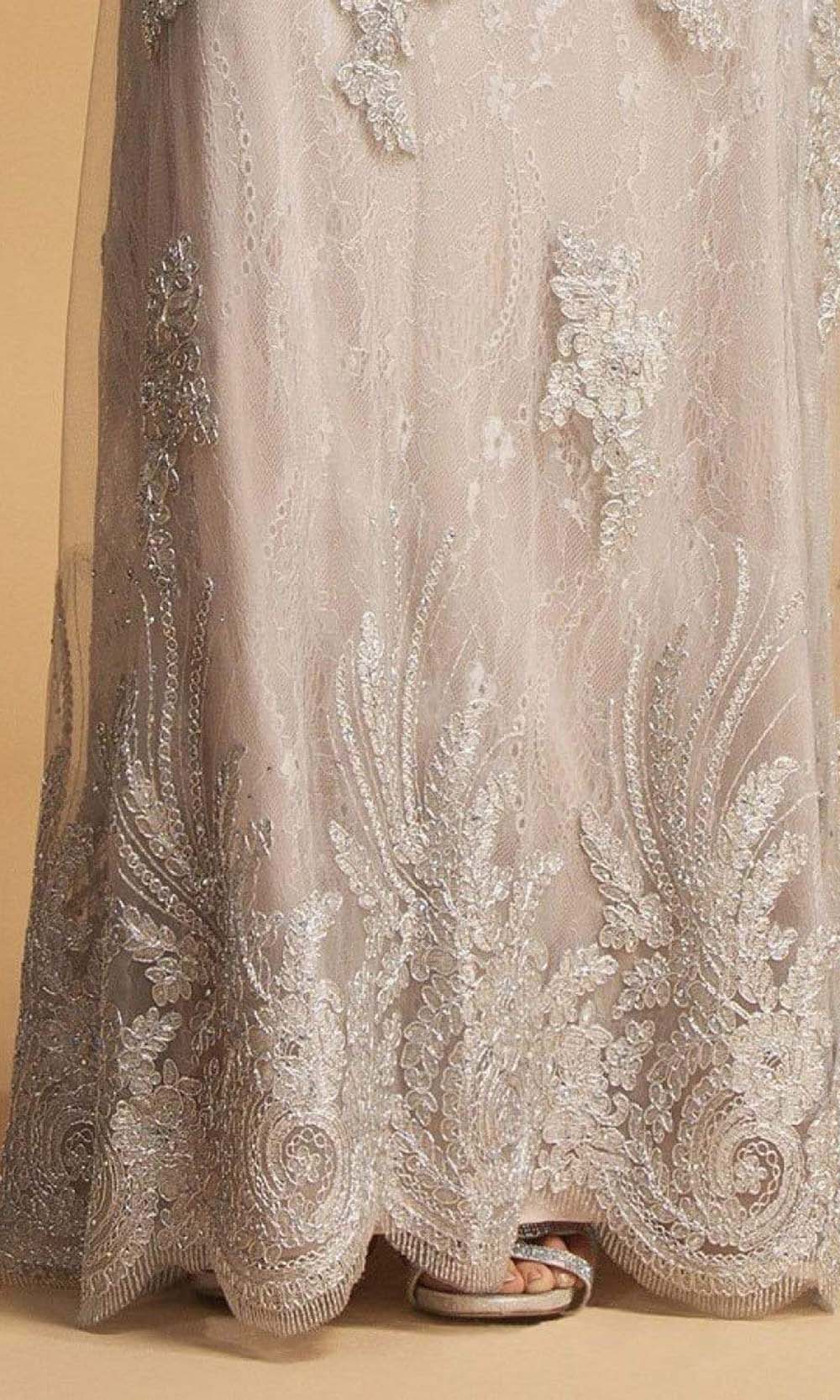 Walk the red carpet in this exquisite Trevi Collection L2096 creation and make a statement. This attraction features a v-neckline, sheer shoulder straps, and a lace lining and is embellished with lace appliques and beadwork. Beadwork accents the waist, and a sheer v-open back completes the look. The sheath skirt falls to a scalloped hem. In this Trevi Collection L2096 masterpiece, you will be the talk of the party.