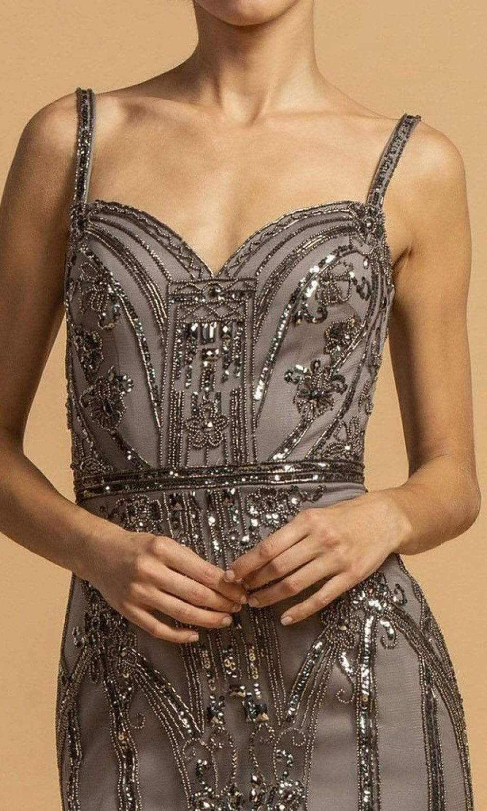 You will be the center of attention with this stunning Trevi Collection L2196 evening gown. This dress is a sleeveless and embroidered bodice, this dress has a sweetheart neckline supported by thick straps. The skirt has a sheath silhouette and a mid open back with a back zipper closure. This outfit will definitely highlight your curves. Make your perfect day blossom with a promise of forever in this lovely Trevi Collection L2196 work of art. Model is wearing Coffee color.