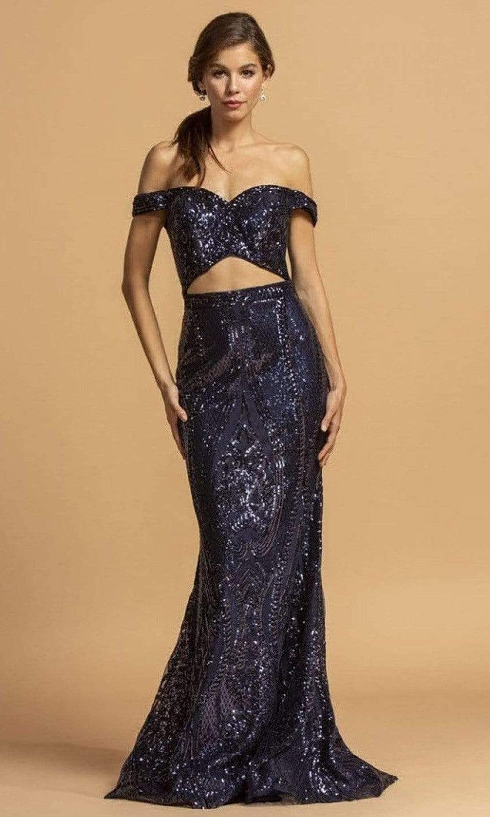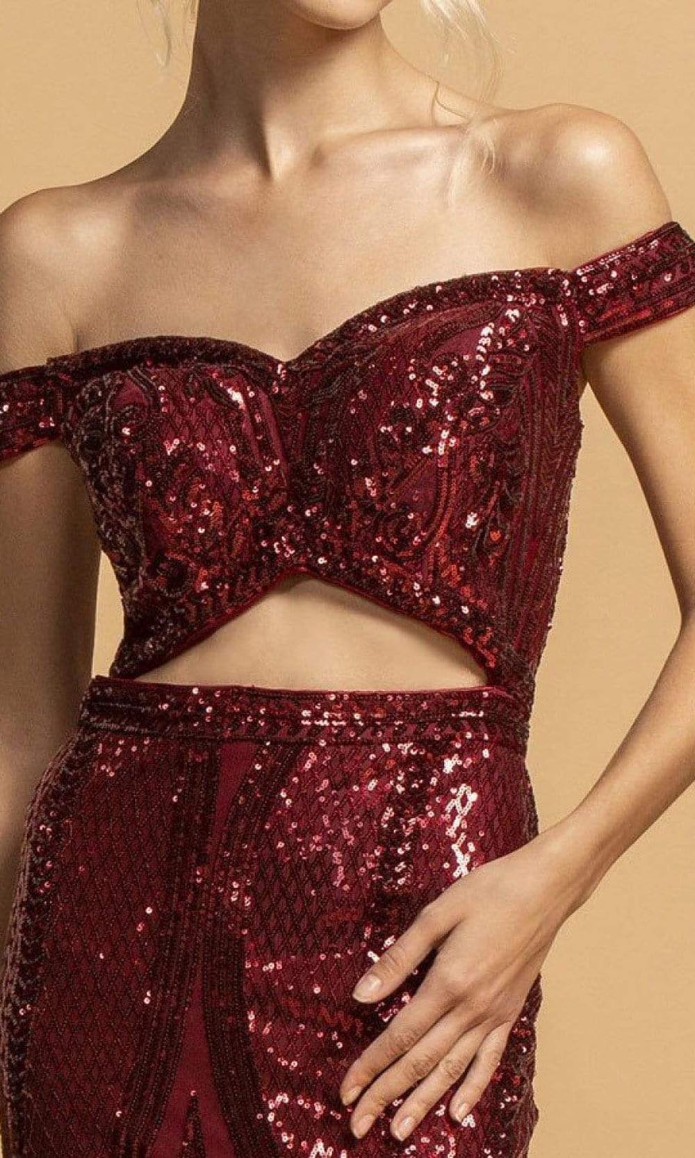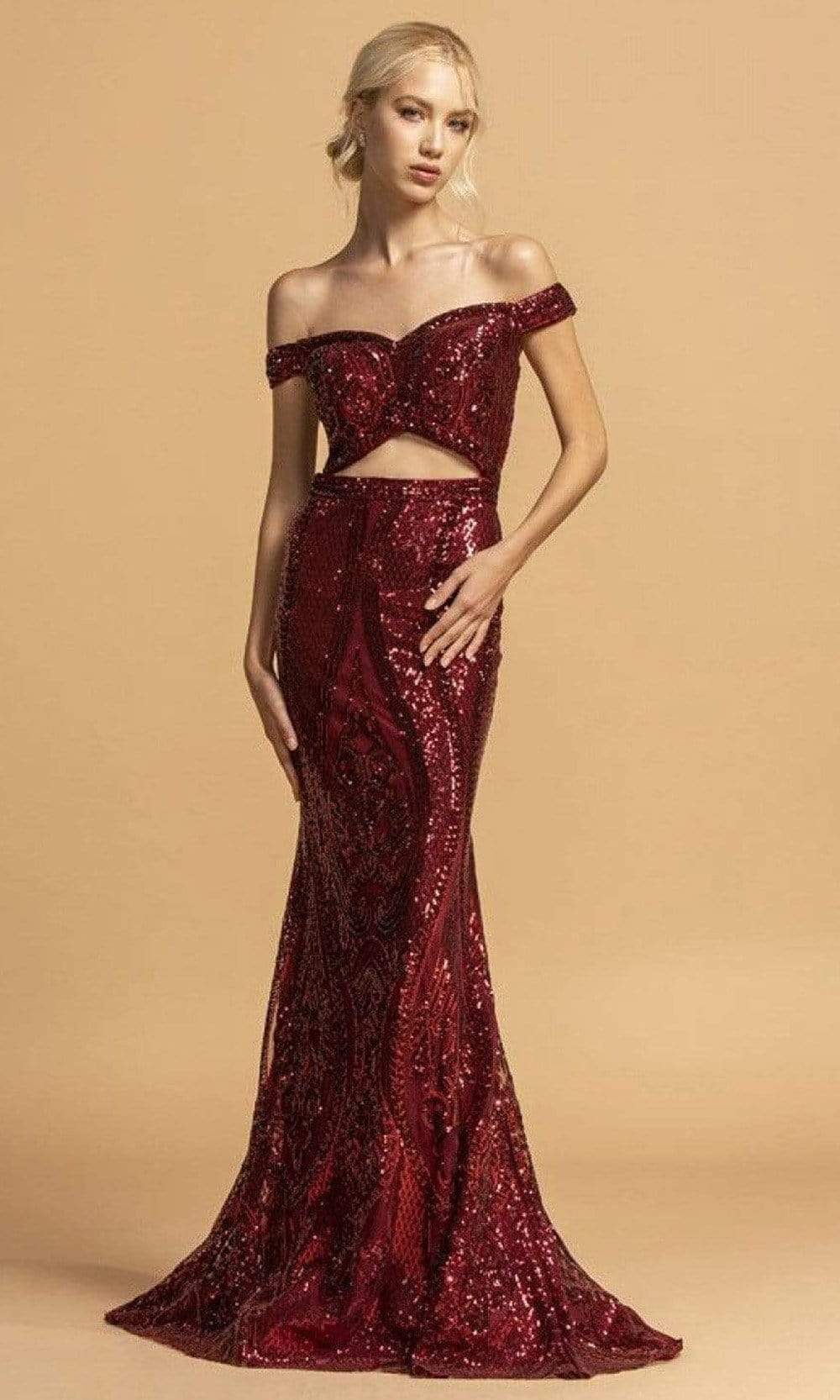 Be the loveliest of them all in this modern and classic shimmering Trevi Collection L2199 evening gown. The embroidered two piece bodice of this dress has an off the shoulder neckline. This dress has a sheath silhouette and a mid open back with a back zipper closure. Trevi Collection is one of the most popular brands to look for this year, with a plethora of special occasion dresses to choose from. This Trevi Collection L2199 is a brilliant look for a modern woman like you. Models are wearing the Burgundy and Navy colors.