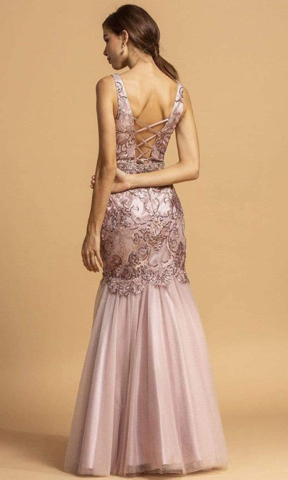 If you are looking for that figure-flattering dress, this Trevi Collection L2203 stunning creation is the best option that you will consider. This dress has a plunging V neckline, is sleeveless, and has an appliqued bodice. This exhibits a trumpet silhouette as well as a mid open back with lace up back closure. Trevi Collection is one of the most popular brands to look for this year, with a plethora of special occasion dresses to choose from. Express your unique persona and classic sophistication in Trevi Collection L2203 masterpiece. Model is wearing Mauve color.