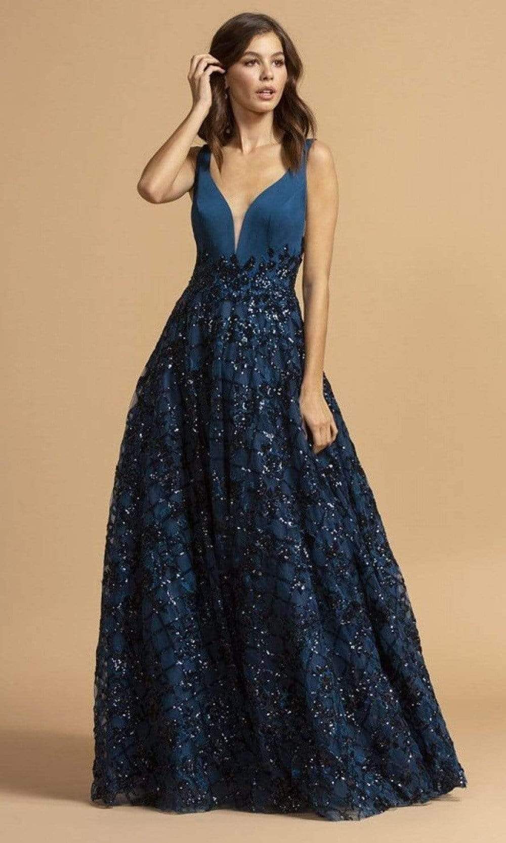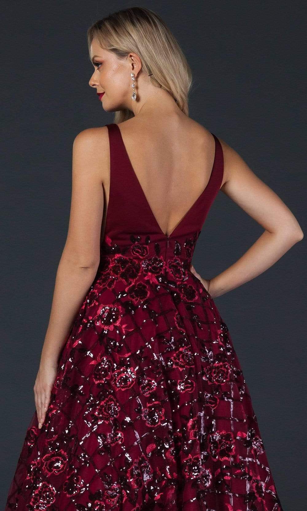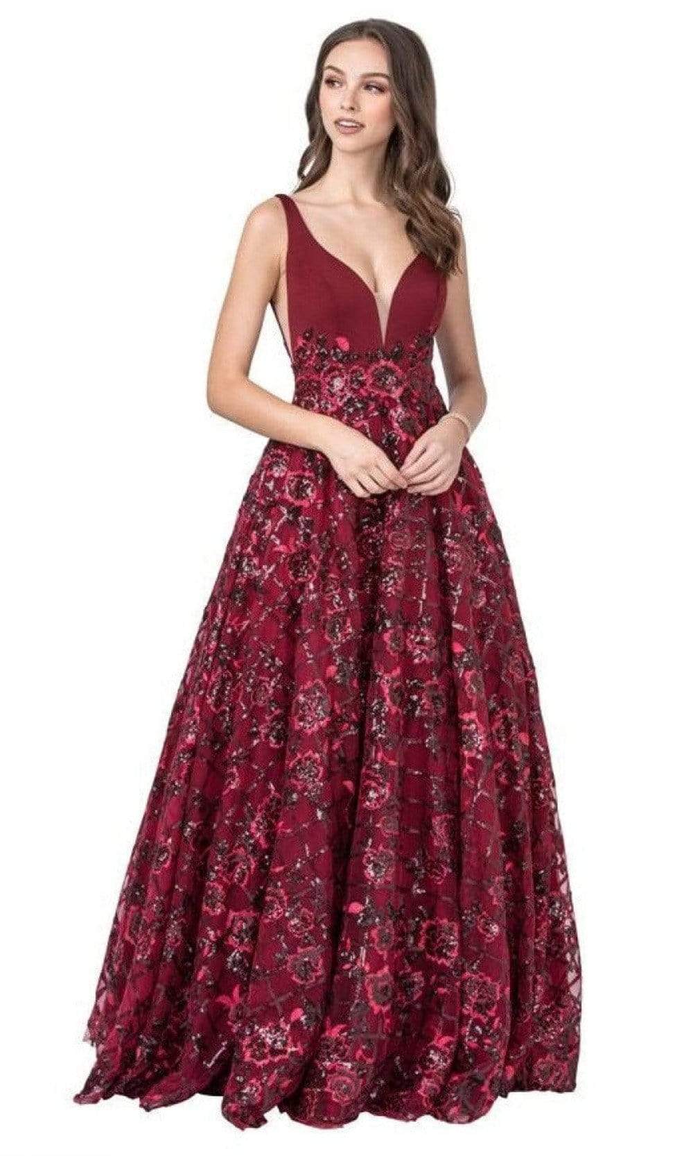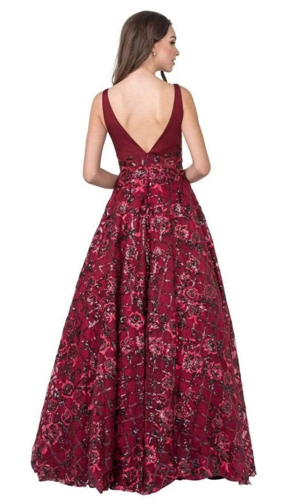 Wear this fascinating look from Trevi Collection L2237 to exude your vibrant personality. This stunning gown dazzles with a sleeveless, deep V neckline, fitted bodice, and sheer insets. The dress is made of chiffon, lace, and sparkles. It has a zipper closure and a V-back. This fabulous dress will make everyone remember you because they will notice your beauty. The A-line skirt is full-length. You will feel dainty and feminine in this enchantingly designed Trevi Collection L2237 gown.The models are dressed in Charcoal, Burgundy, and Teal.