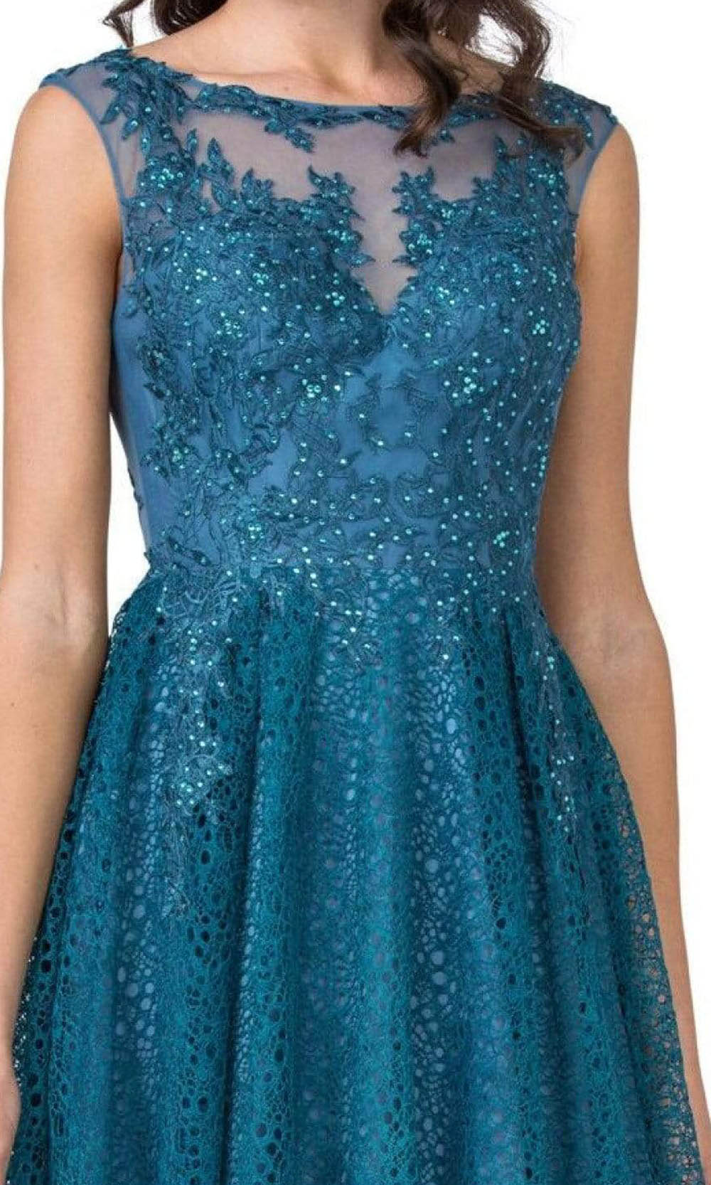 With this Trevi Collection L2329 evening dress, you may combine sophisticated style with glamor in the best possible way. This dress features a beaded and appliqued bodice with an illusion bateau neckline. This exhibits an A-line silhouette and a V-back with a rear zipper fastening. Show off your figure in this magnificent masterpiece by Trevi Collection L2329. Trevi Collection has a wide selection of dresses from prom gowns to ballgowns that are perfect for every occasion. The models are dressed in Dark Lavender and Teal