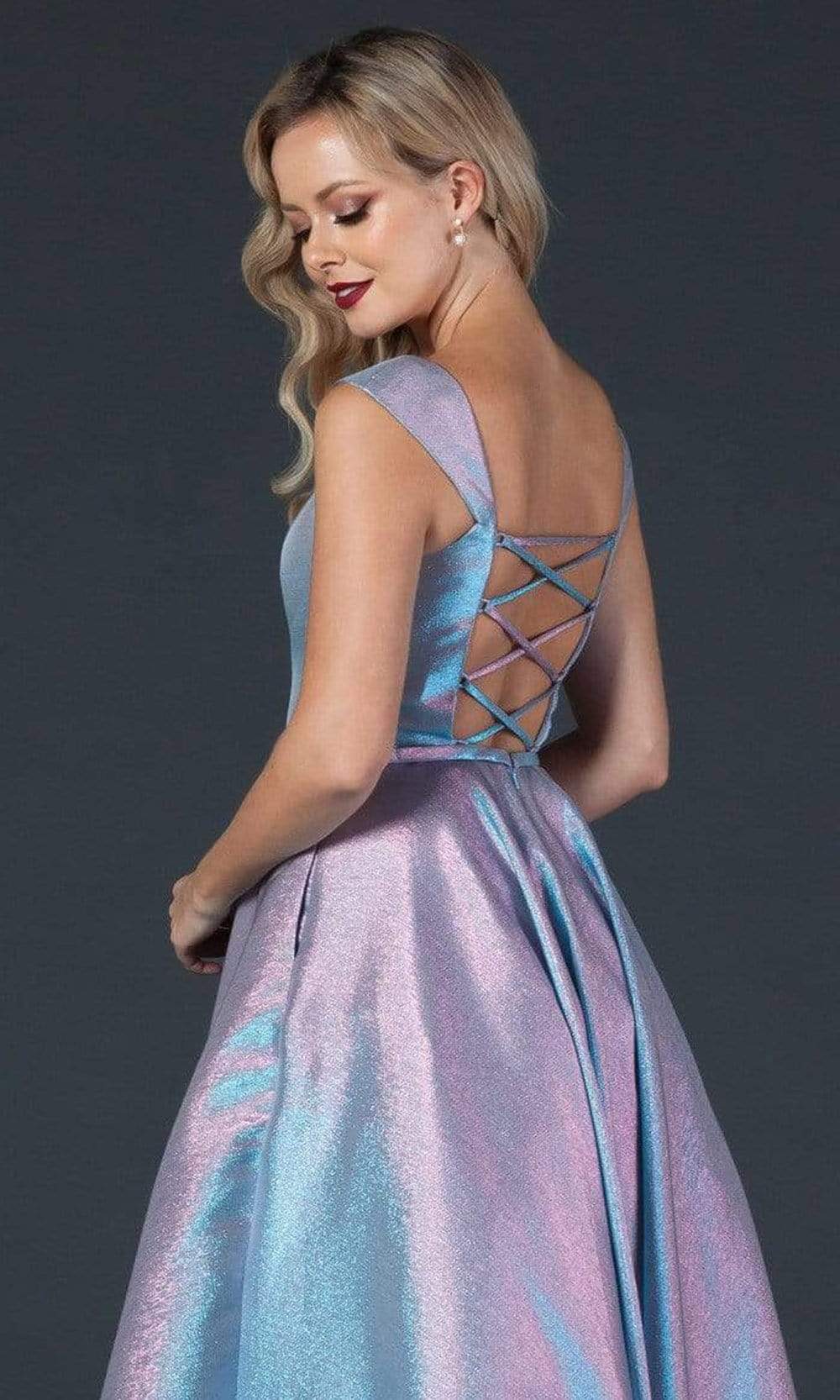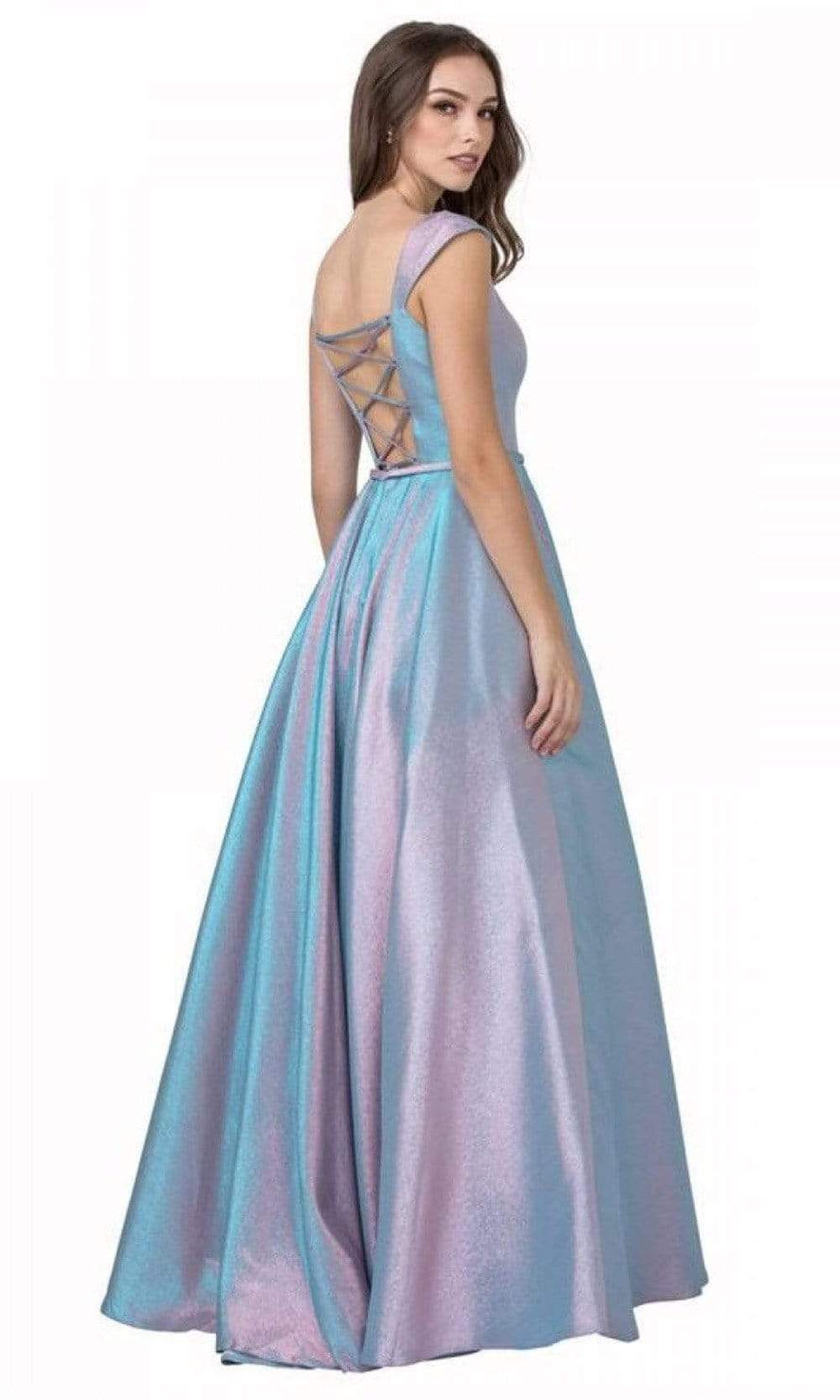 The Trevi Collection L2365 is ideal for its distinctive appearance and impeccable fit. This evening gown features a metallic bodice with a square neckline held up by thick straps. The mid-open back with lace-up back and back zipper closure is also seen, along with an A-line silhouette. For more glitz and glamour, wear Trevi Collection L2365. Trevi Collection has a wide selection of dresses from prom gowns to ballgowns that are perfect for every occasion. The models are wearing Blue/Pink Pink/Gold.