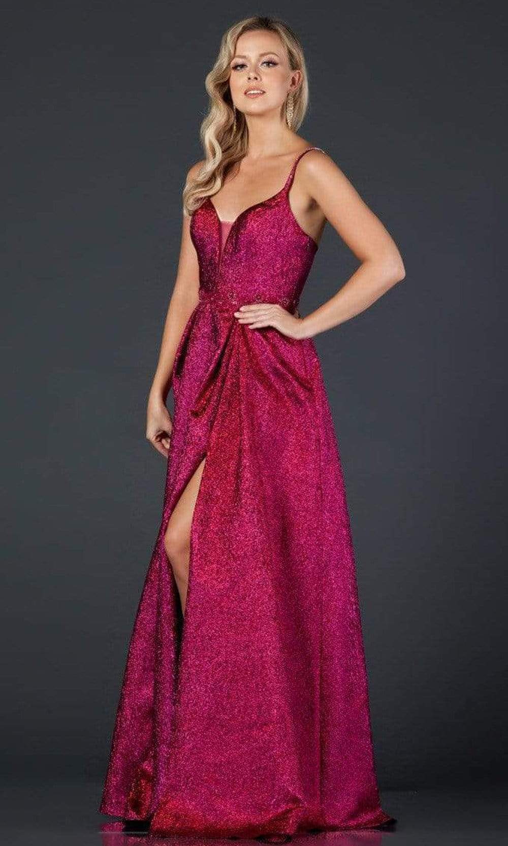 Shine with the glow of ever after in this mesmerizingly Trevi Collection L2370 evening gown. This gown has a sleeveless bodice, this dress has a plunging V neckline supported by thin straps. This dress has an A line silhouette with a mid open back to complete the design. This outfit will be a good addition to your wardrobe that you can use in different special occassion. Radiate a fresh style as you orchestrate a dramatic entrance in this radiant Design L2370 creation. Model is wearing the Raspberry and Royal color.